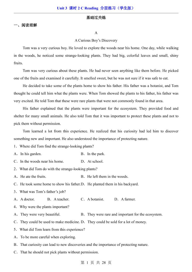 Unit 3 课时2 C Reading(分层练习)11