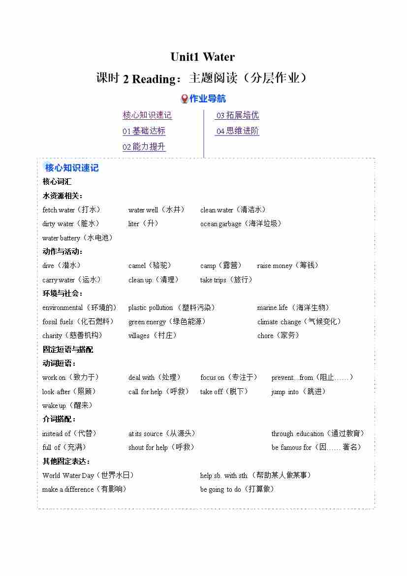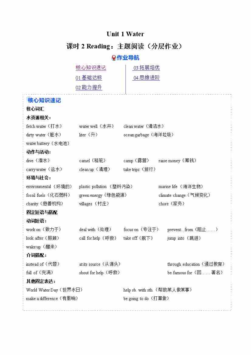 Unit 1 课时2 Reading(分层作业)(原卷版)