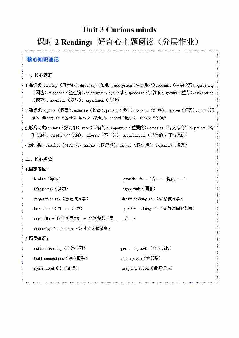 Unit 3 课时2 C Reading(分层作业)(原卷版)