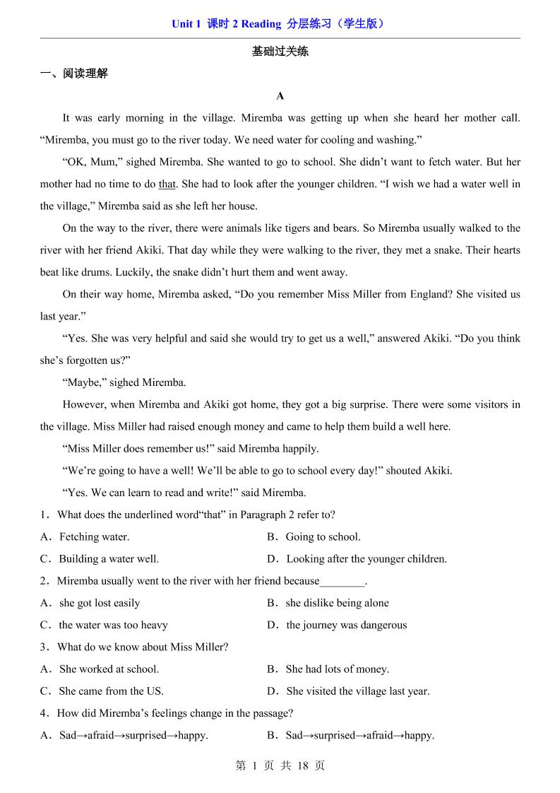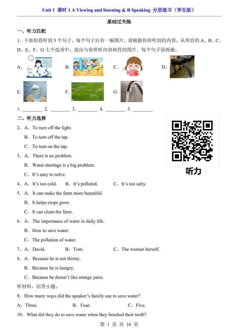 Unit 1 课时1 A Viewing and listening & B Speaking(分层练习)
