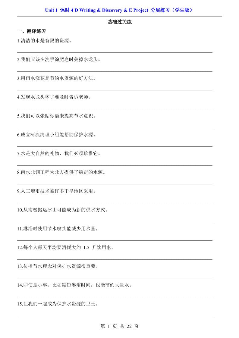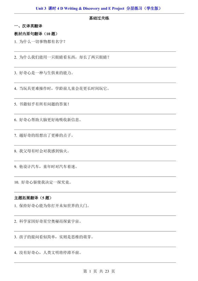 Unit 1 课时4 D Writing & Discovery & E Project(分层练习)