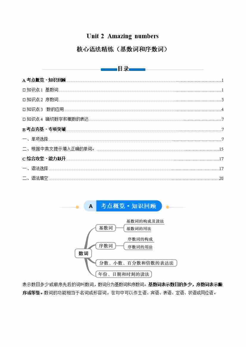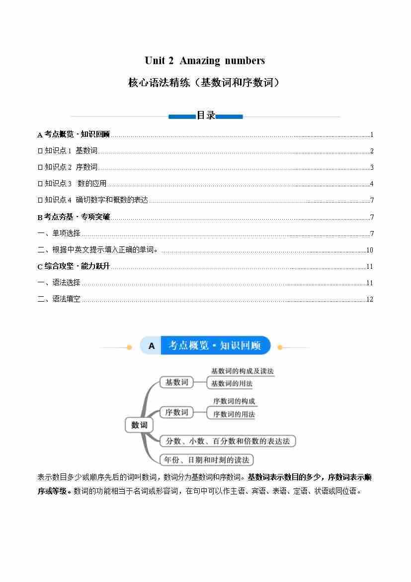 八上沪教.Unit 2 Amazing numbers 基数词和序数词(单元核心语法精练)(原卷版)