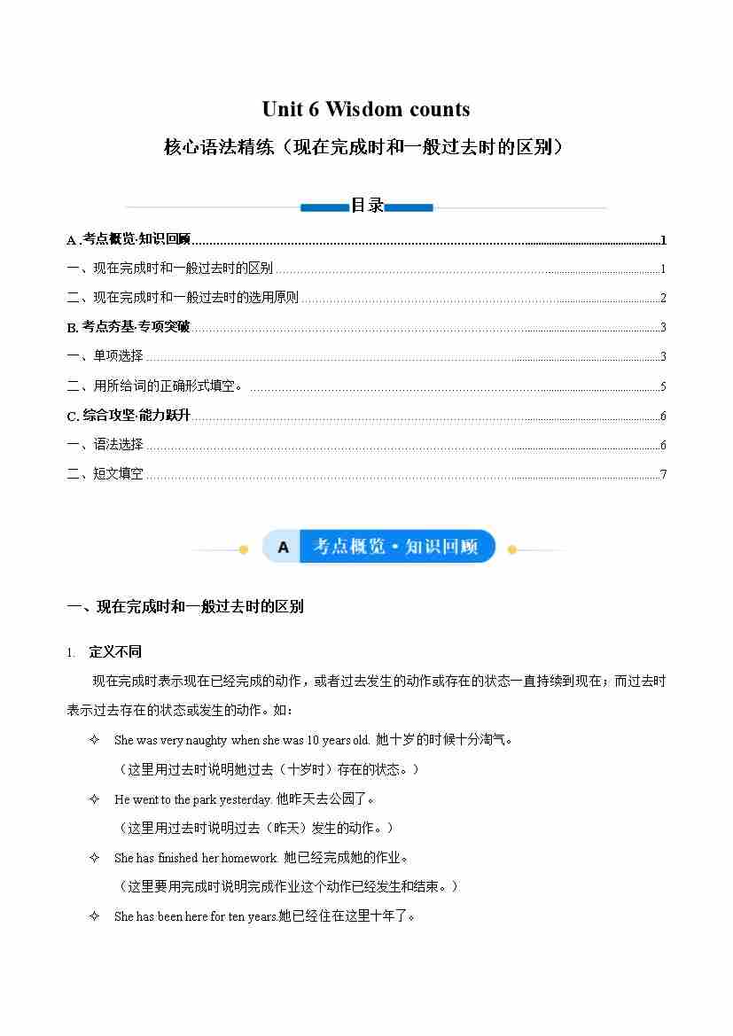 八上沪教.Unit 6 Wisdom counts 现在完成时和一般过去时(单元核心语法精练)(原卷版)