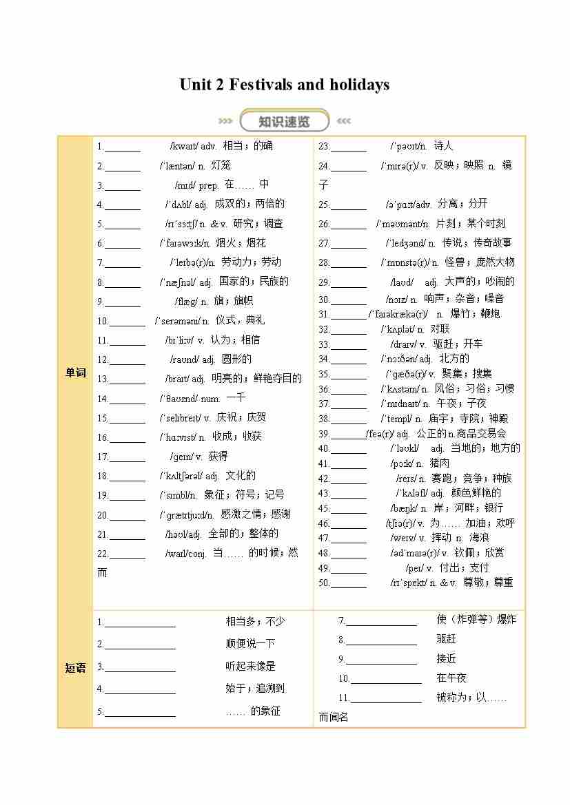 Unit 2 Festivals and holidays (知识清单)(挖空版)