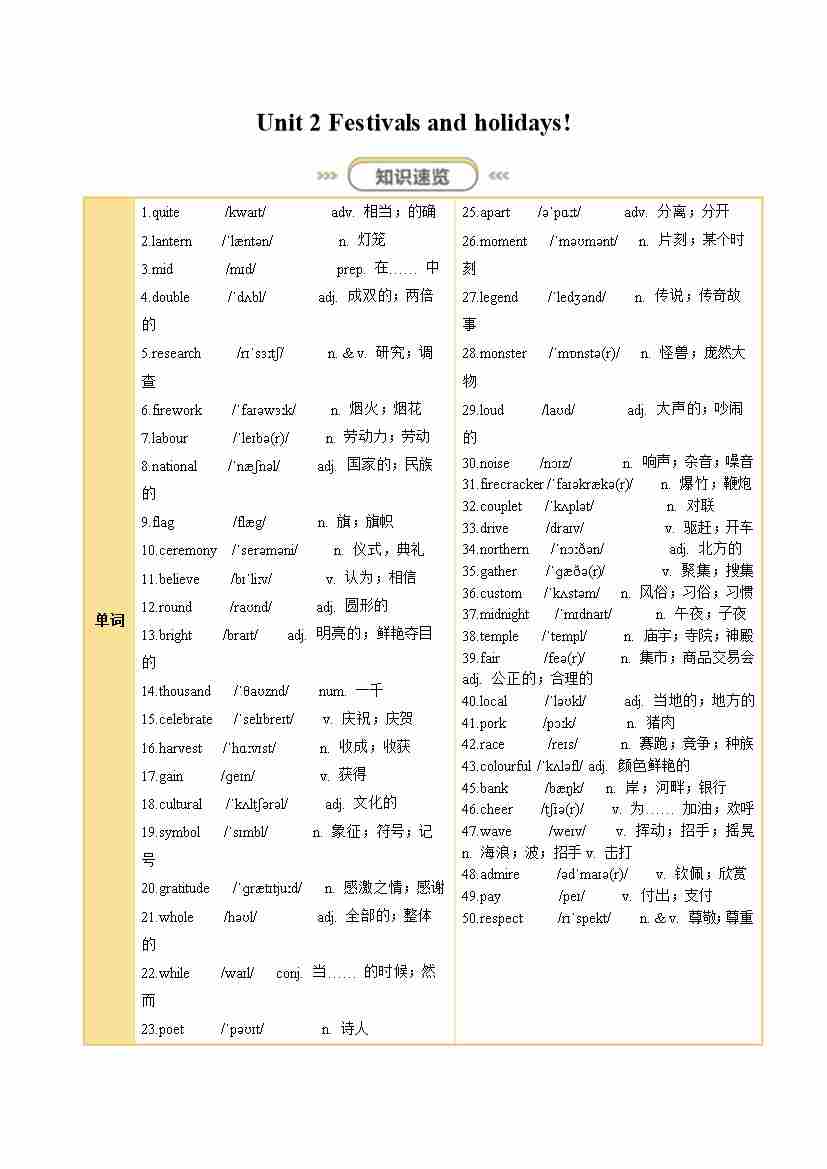 Unit 2 Festivals and holidays (知识清单)(解析版)