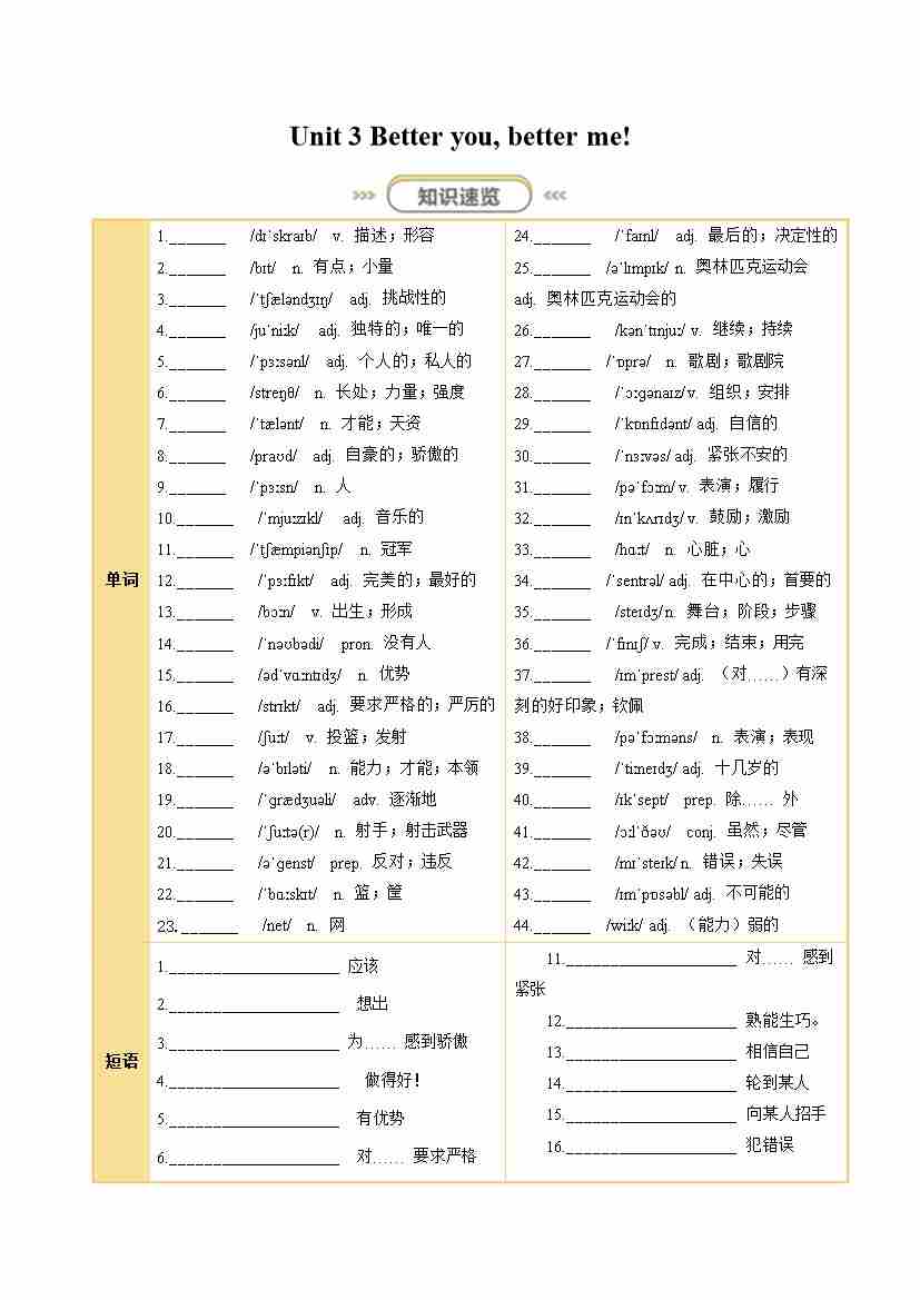 Unit 3 Better you, better me! (知识清单)(挖空版)