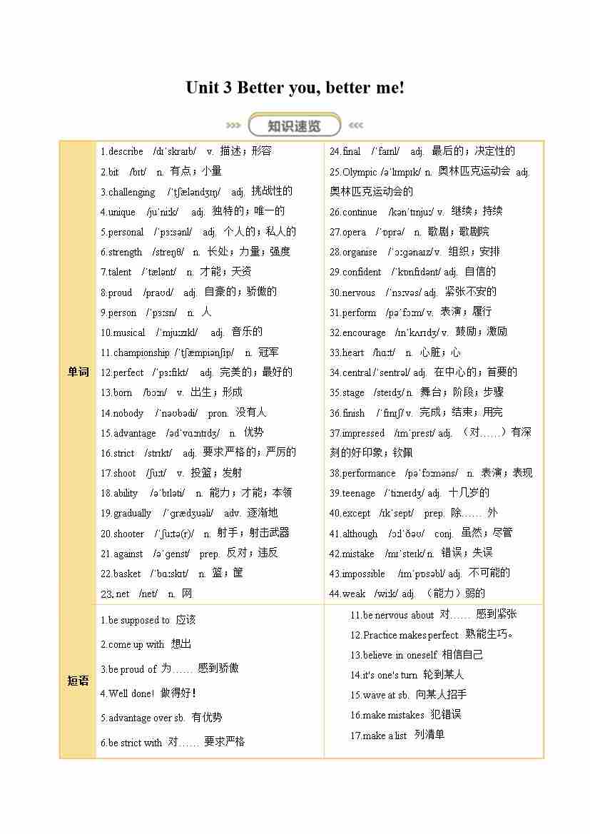 Unit 3 Better you, better me!(知识清单)(解析版)