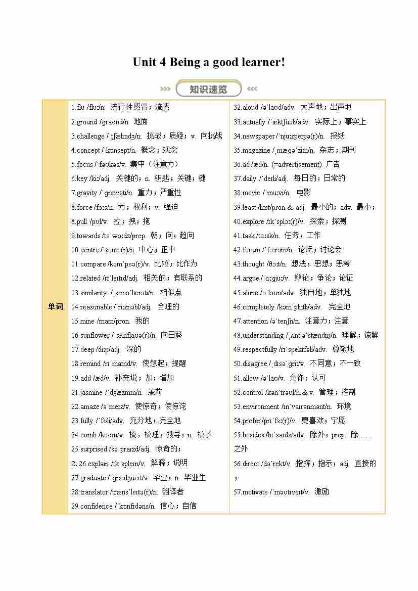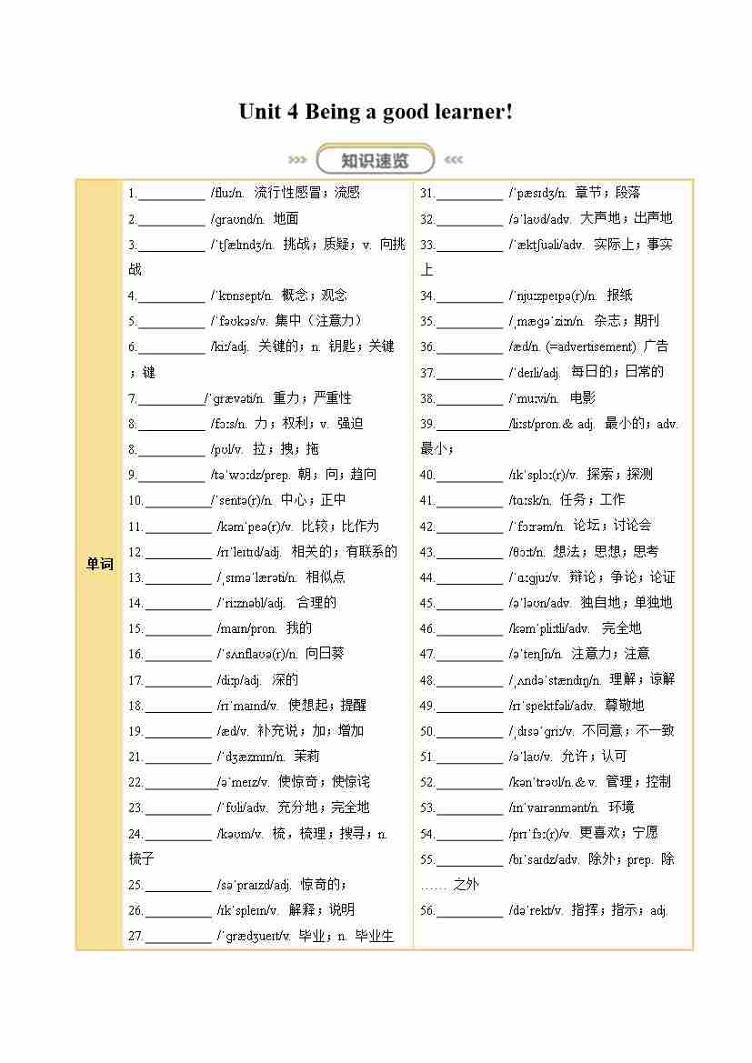 Unit 4 Being a good learner(知识清单)(挖空版)
