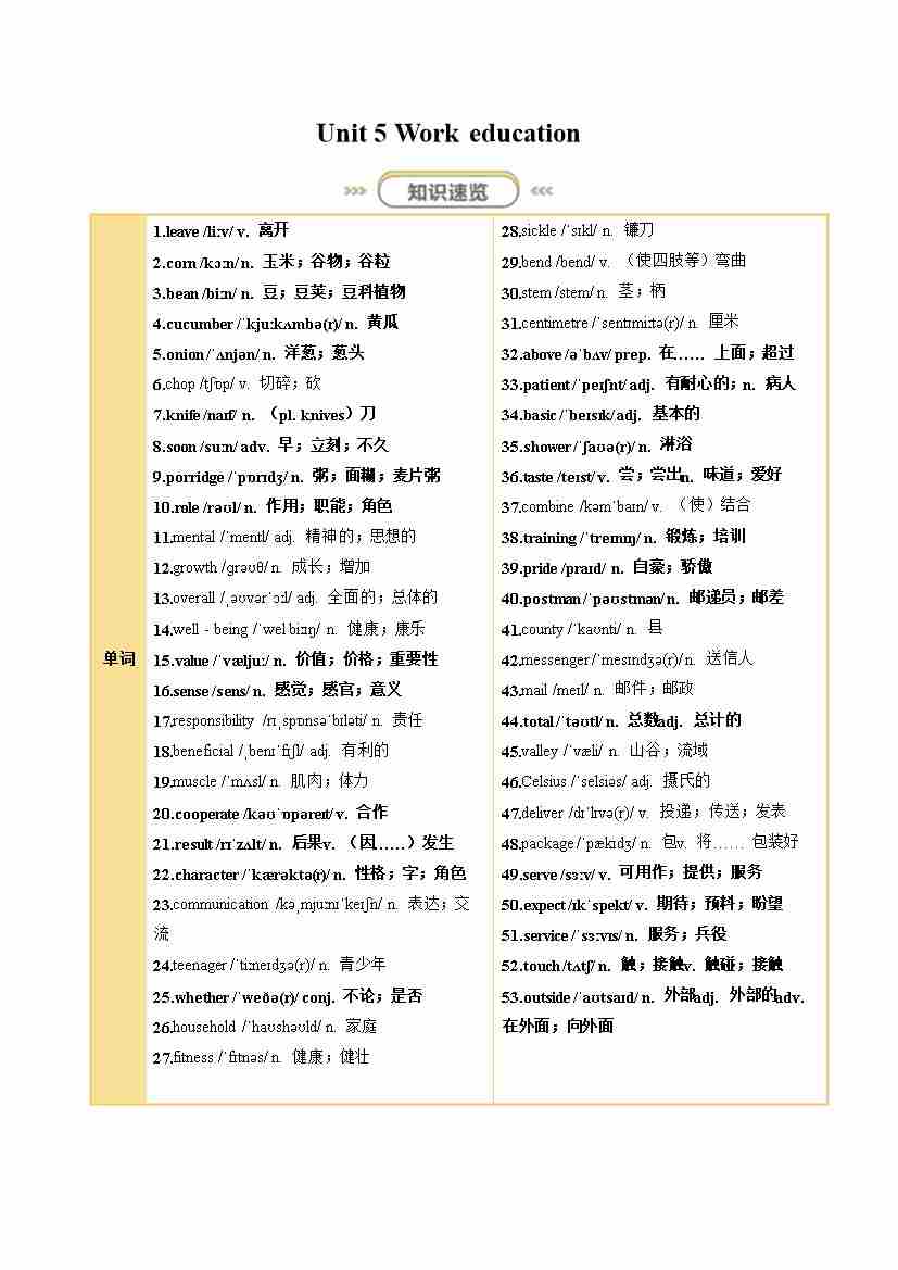 Unit 5(知识梳理)八上英语--冀教版-知识梳理