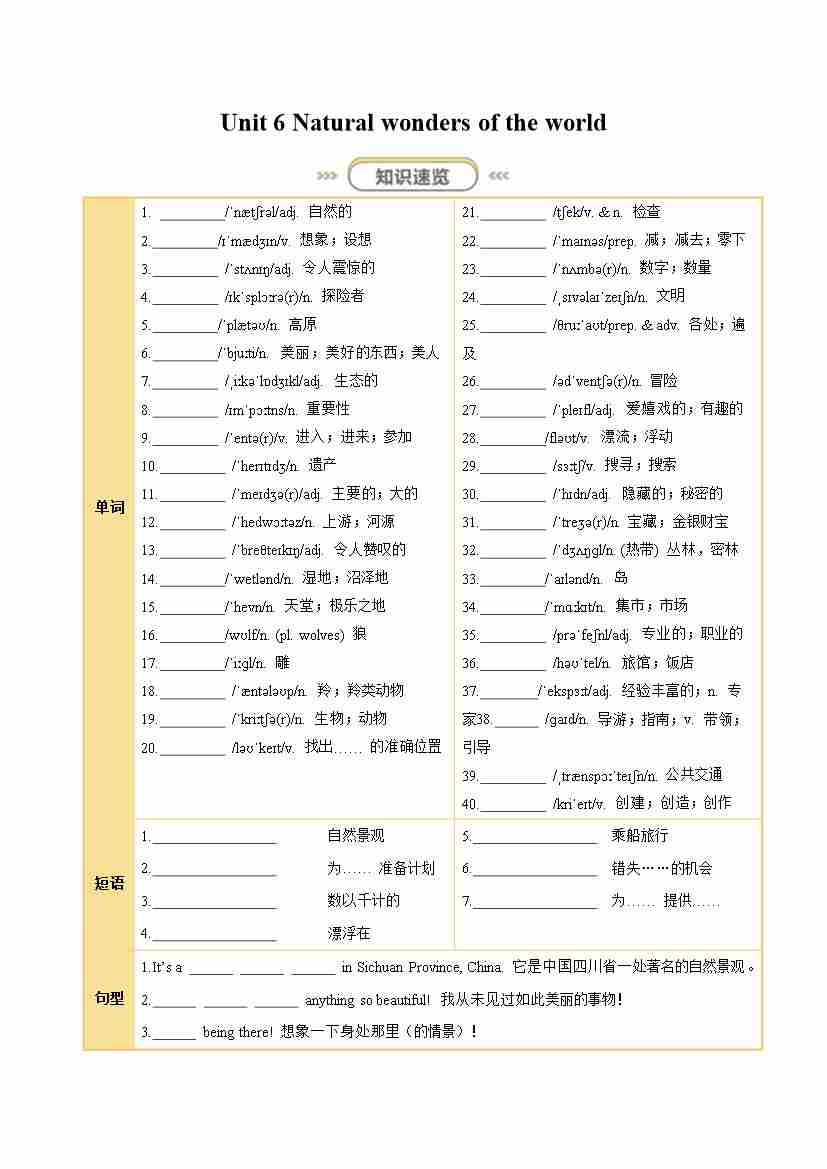 Unit 6 Natural wonders of the world(知识清单)(挖空版)