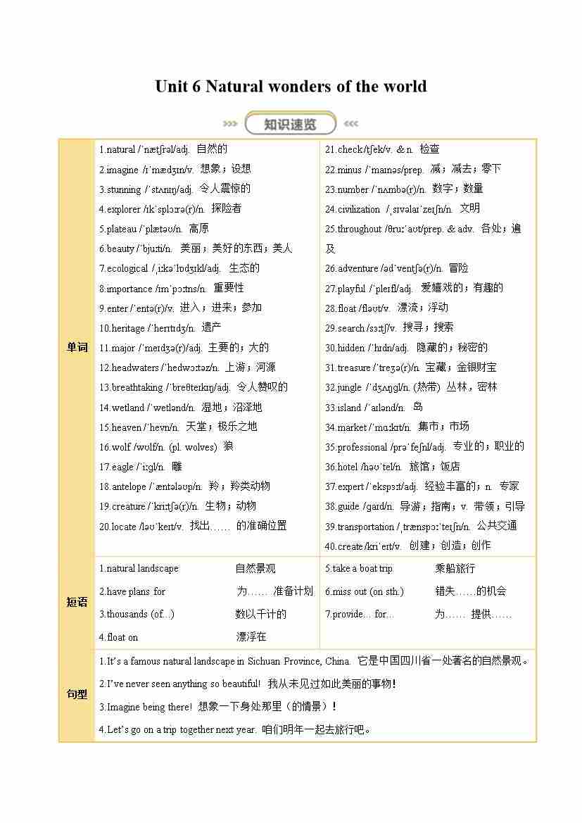 Unit 6 Natural wonders of the world(知识清单)(解析版)