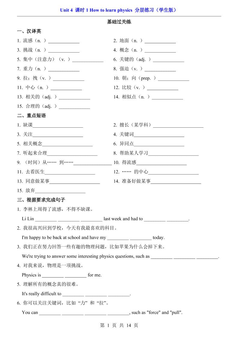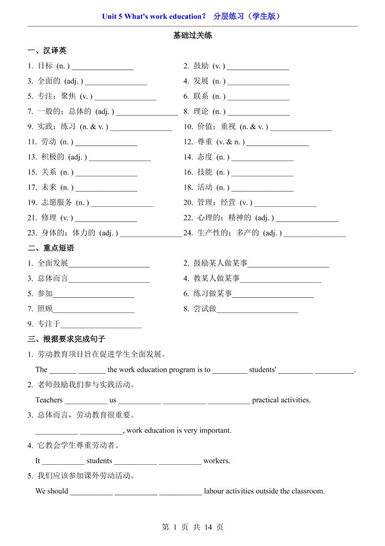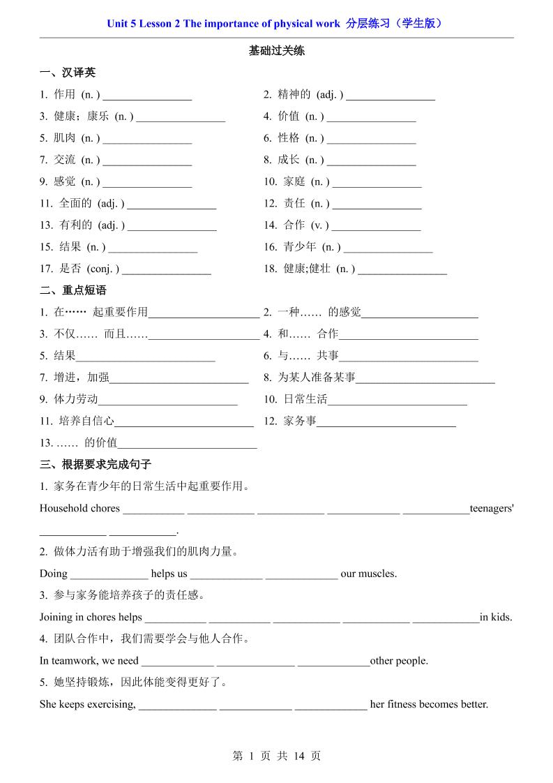 Unit 5 Lesson 2 The importance of physical work(分层练习)