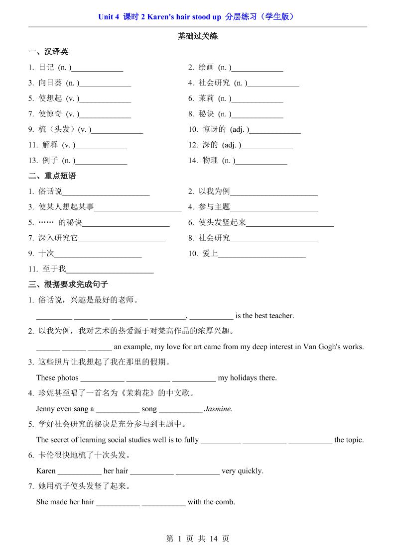 Unit 4 课时2 Karen's hair stood up(分层练习)