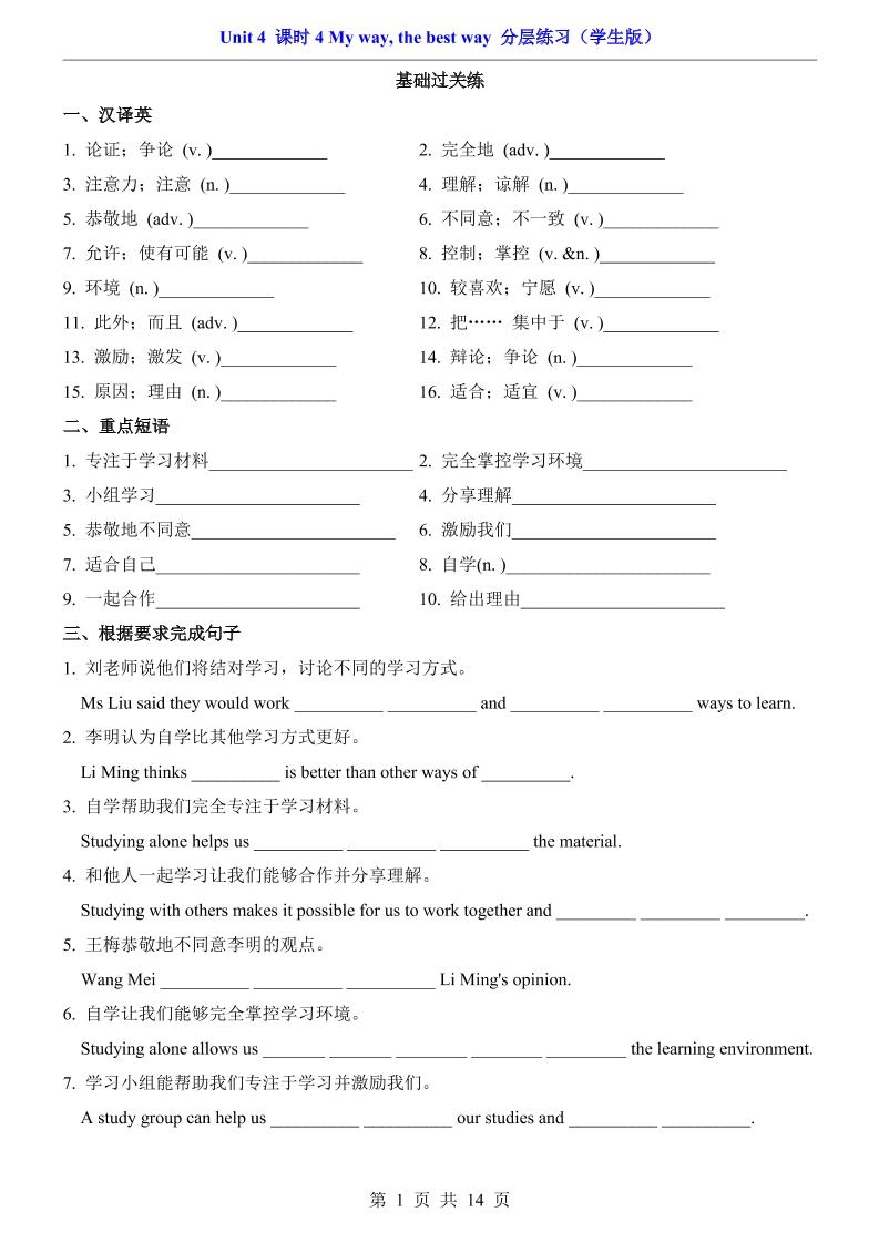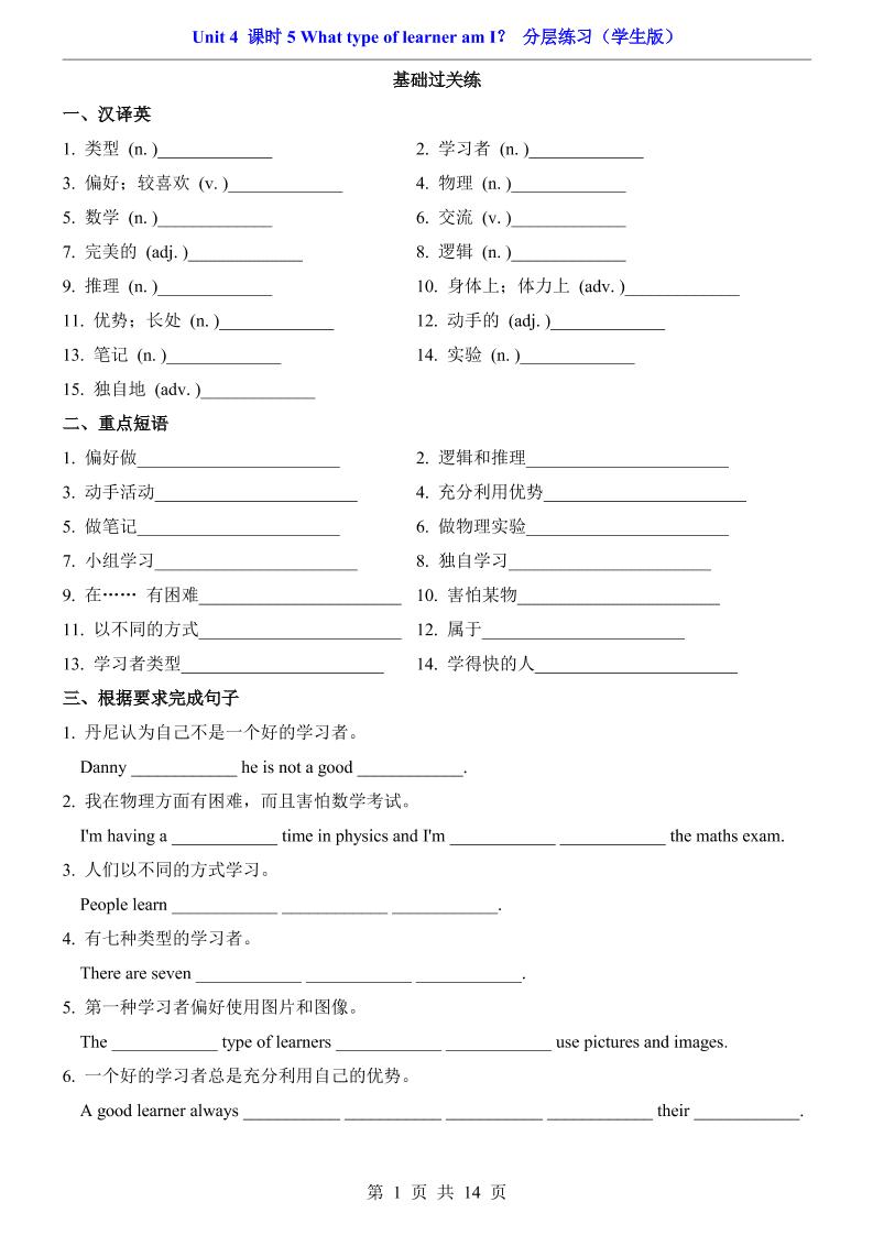 Unit 4 课时5 What type of learner am I?(分层练习)
