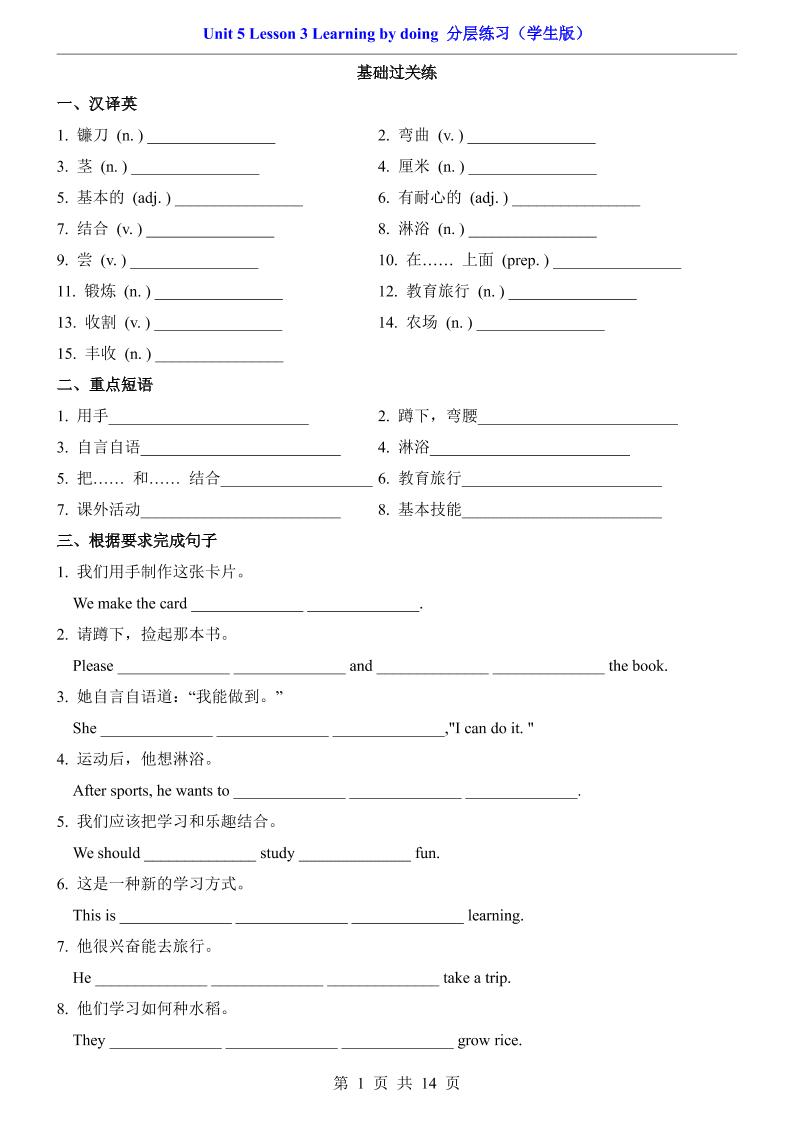 Unit 5 Lesson 3 Learning by doing(分层练习)