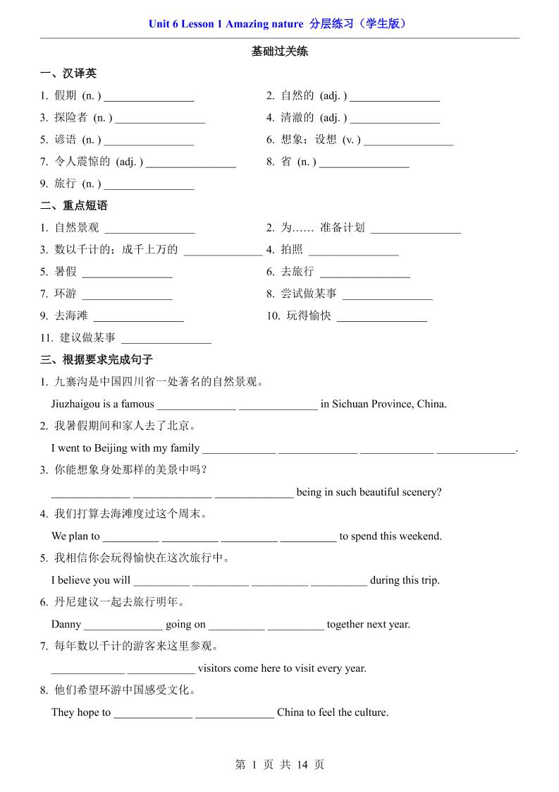 Unit 6 Lesson 1 Amazing nature(分层练习)