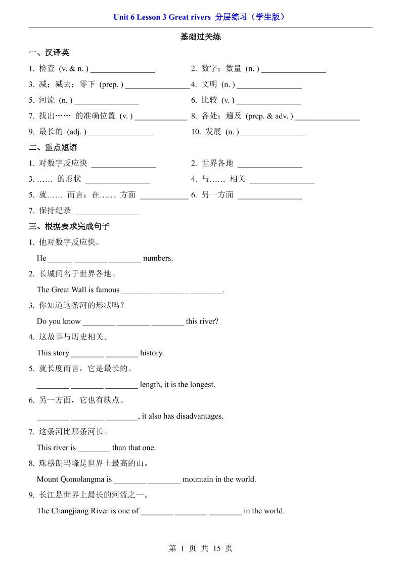 Unit 6 Lesson 3 Great rivers(分层练习)