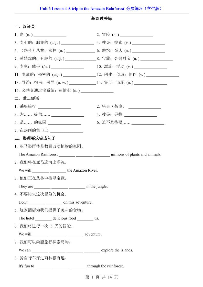 Unit 6 Lesson 4 A trip to the Amazon Rainforest(分层练习)