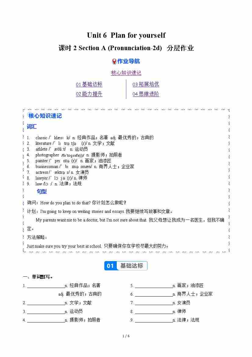 Unit 6 课时2 Section A(Pronunciation-2d)(分层作业)(原卷版)