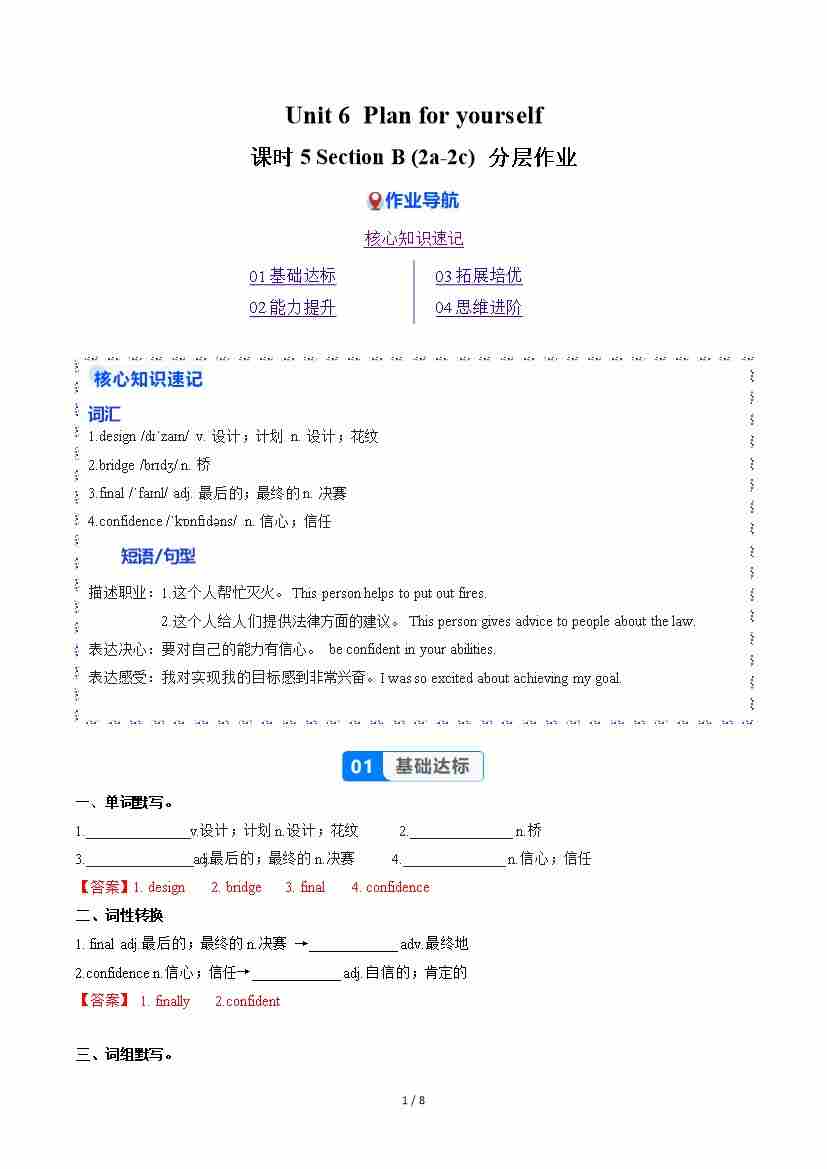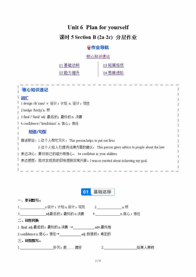 Unit 6 课时5 Section B(2a-2c)(分层作业)(解析版)