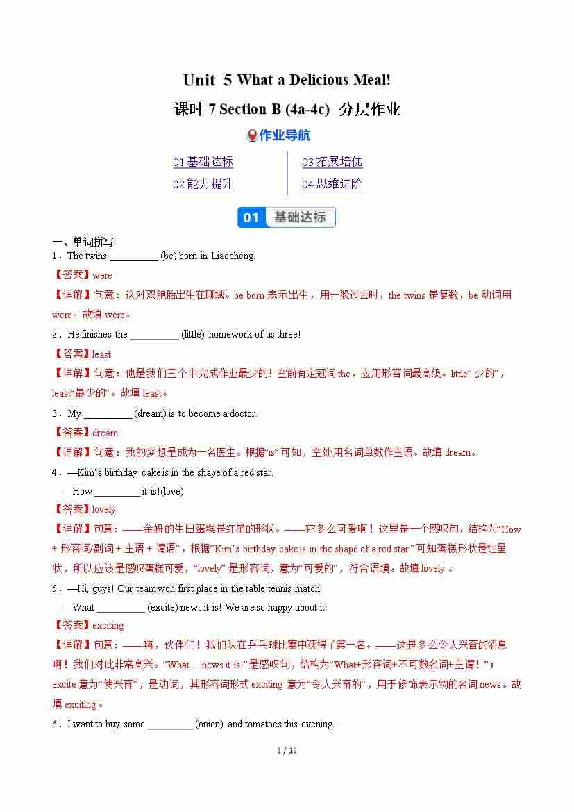 Unit 5 课时7 Section B(4a-4d)(分层作业)(解析版)