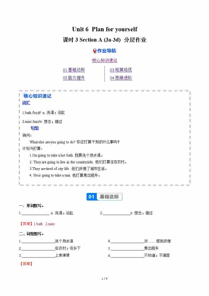 Unit 6 课时3 Section A(3a-3d)(分层作业)(解析版)