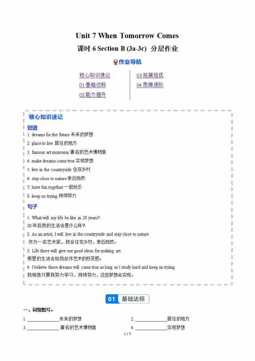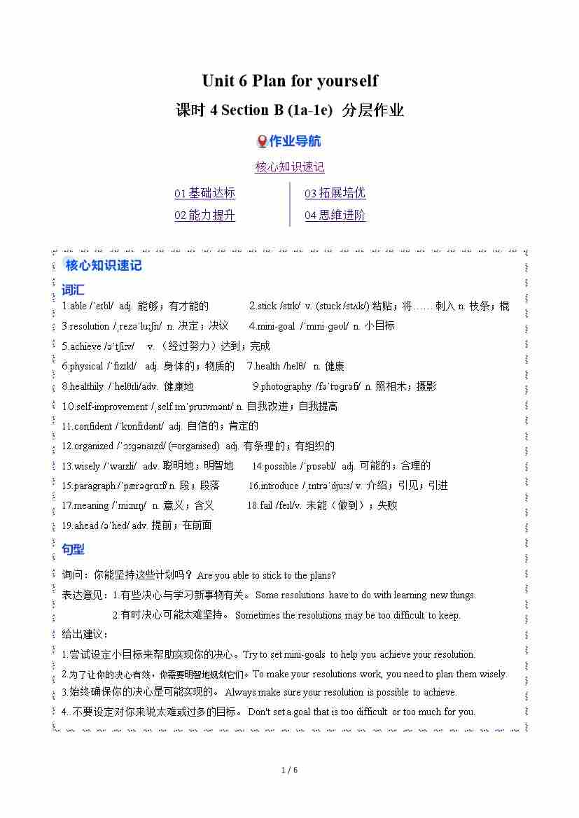 Unit 6 课时4 Section B(1a-1e)(分层作业)(原卷版)