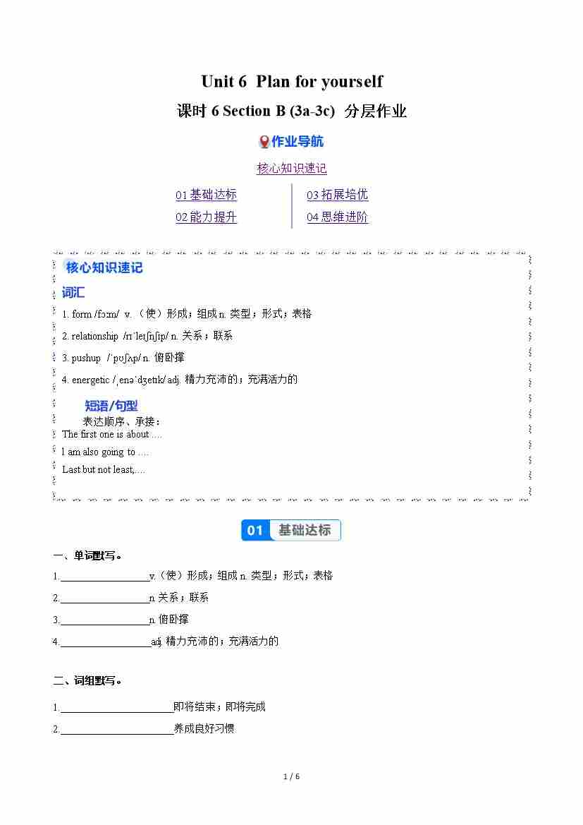 Unit 6 课时6 Section B(3a-3c)(分层作业)(原卷版)