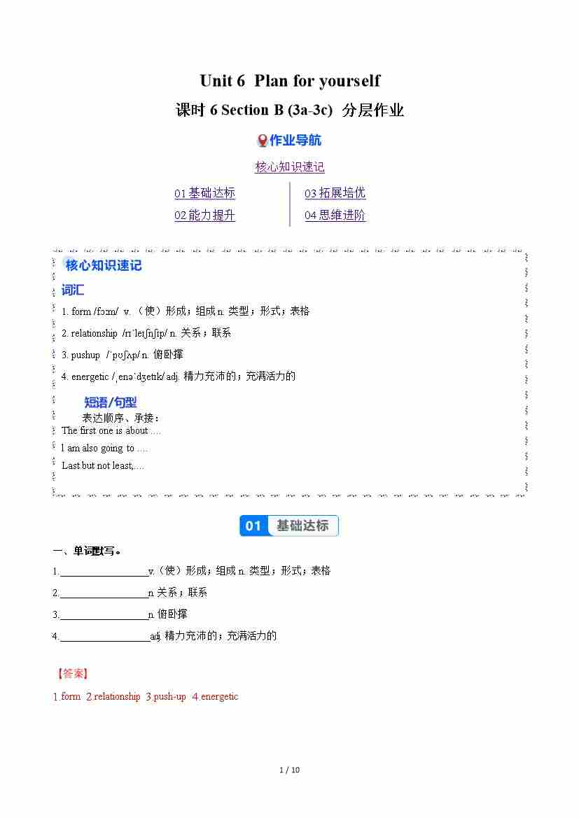 Unit 6 课时6 Section B(3a-3c)(分层作业)(解析版)