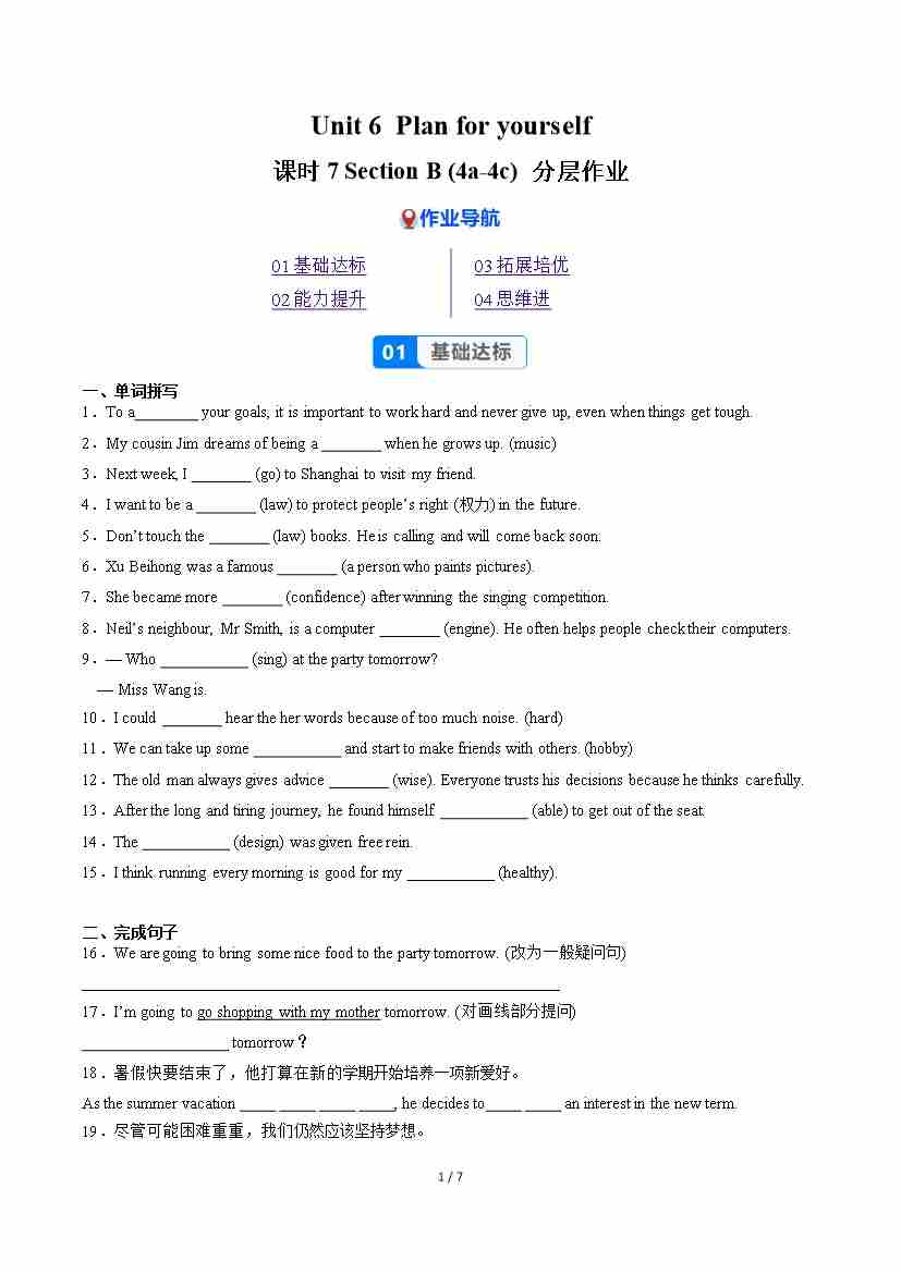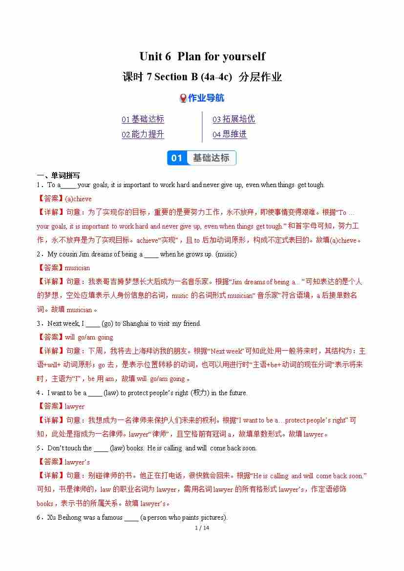 Unit 6 课时7 Section B(4a-4c)(分层作业)(解析版)