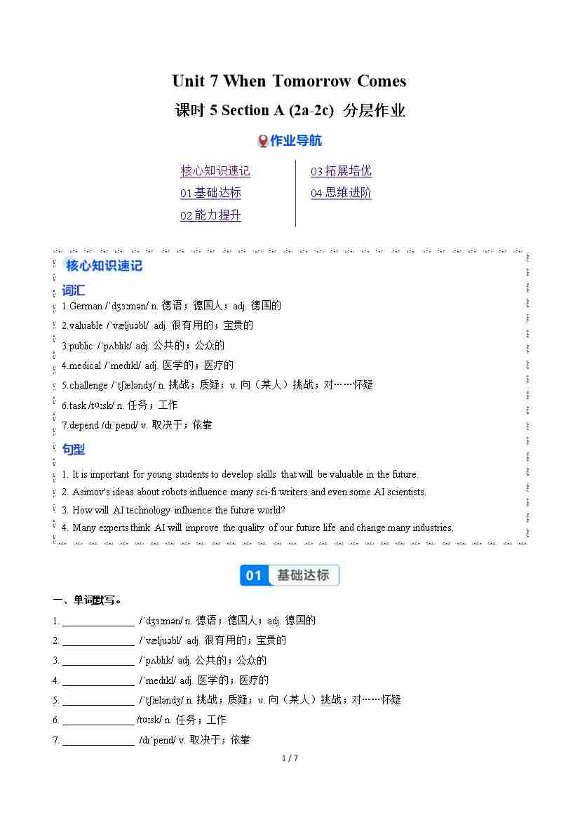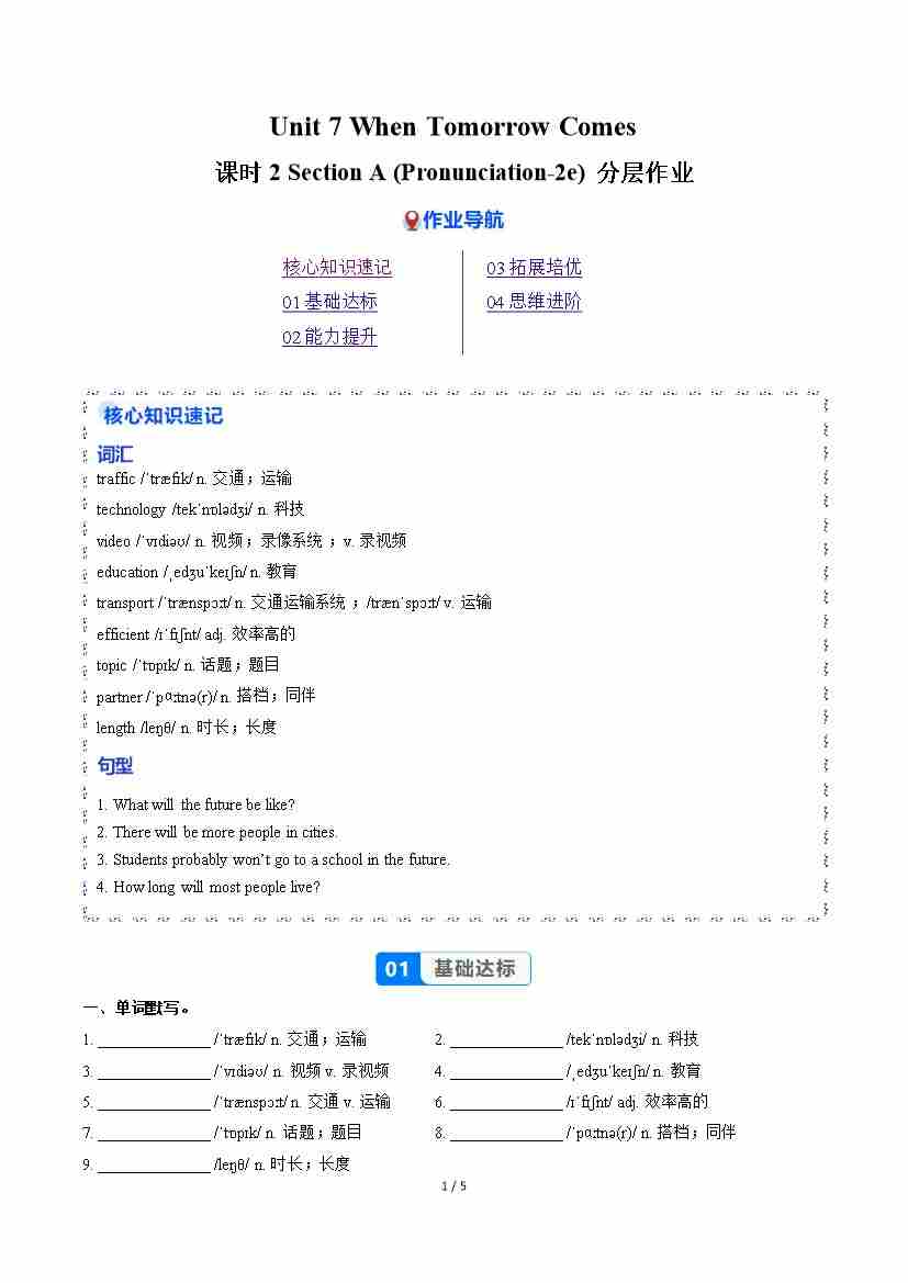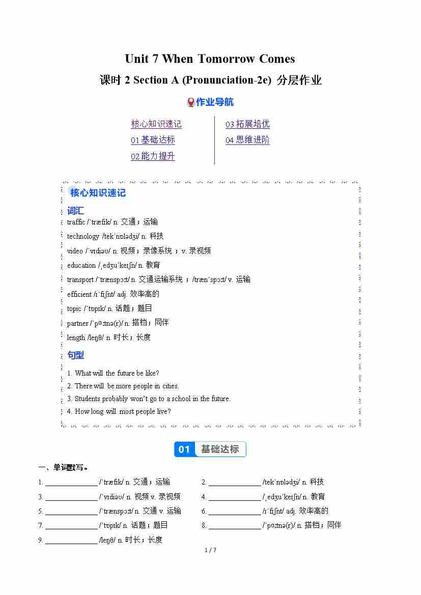 Unit 7 课时2 Section A(pronunciation-2e)(分层作业)(原卷版)