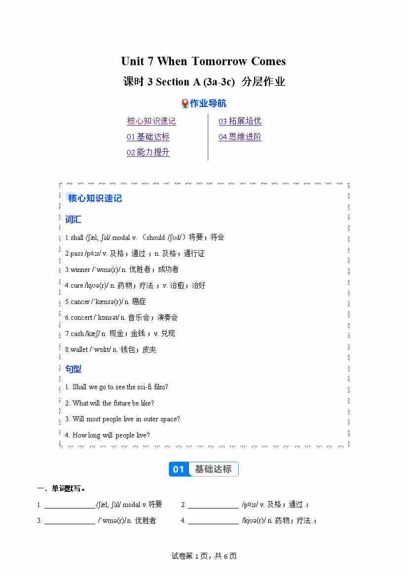 Unit 7 课时3 Section A(3a-3c)(分层作业)(原卷版)