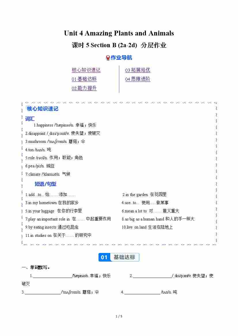 Unit 4 课时5 Section B(2a-2d)(分层作业)(原卷版)