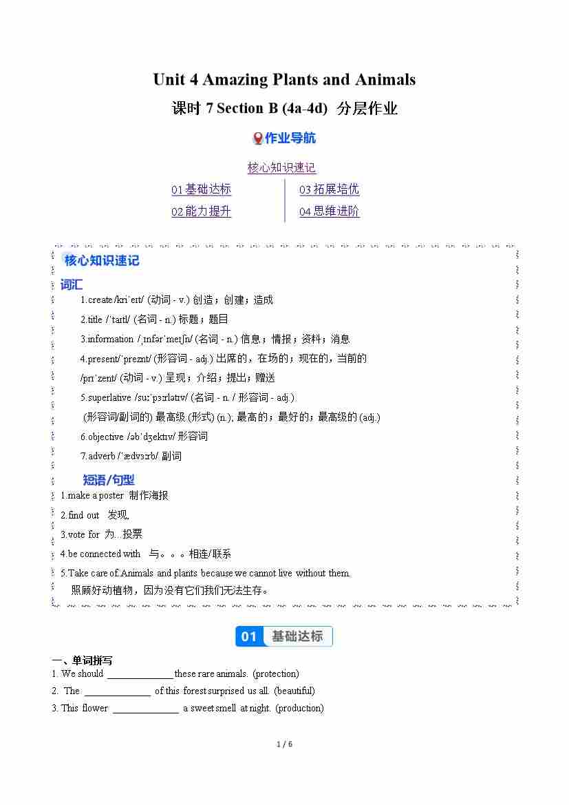 Unit 4 课时7 Section B(4a-4d)(分层作业)(原卷版)