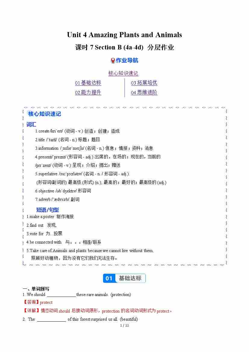 Unit 4 课时7 Section B(4a-4d)(分层作业)(解析版)