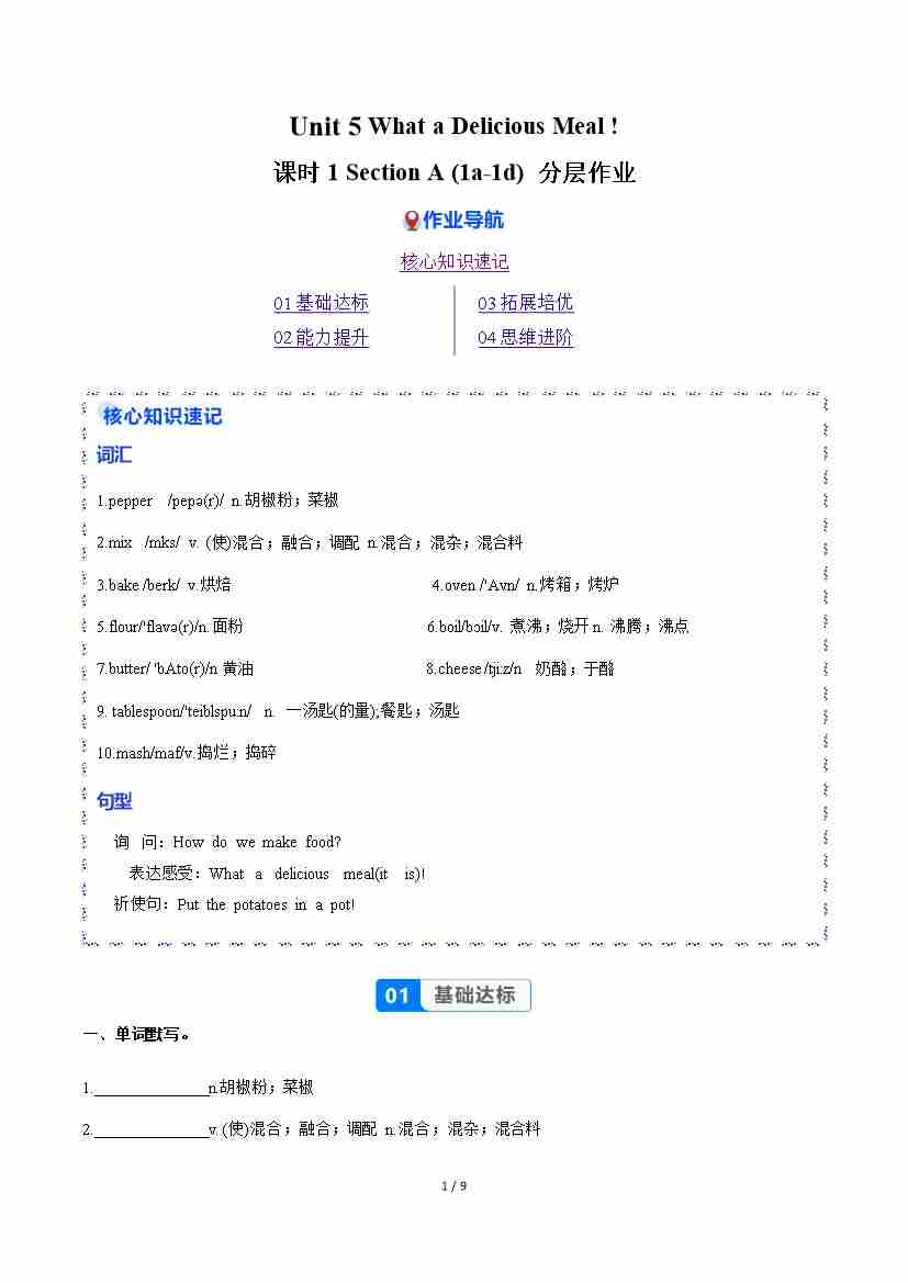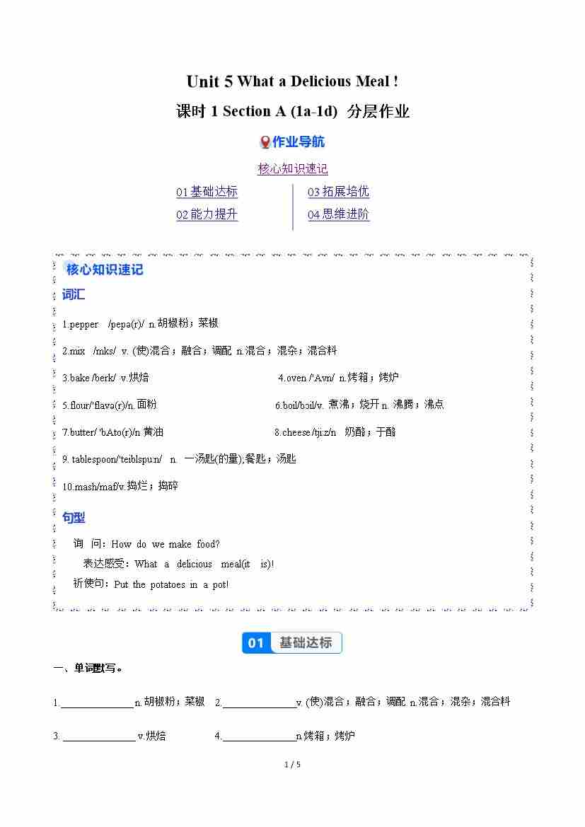 Unit 5 课时1 Section A(1a-1d)(分层作业)(原卷版)