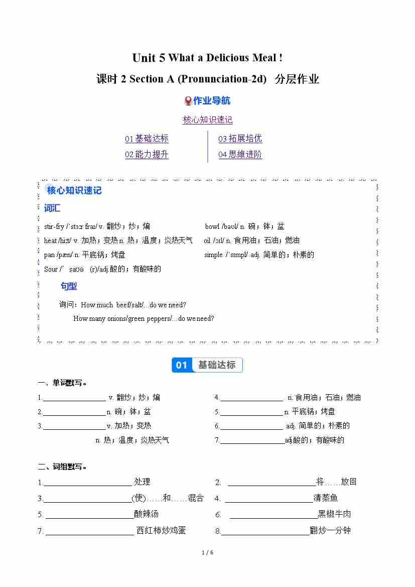 Unit 5 课时2 Section A(Pronunciation-2d)(分层作业)(原卷版)