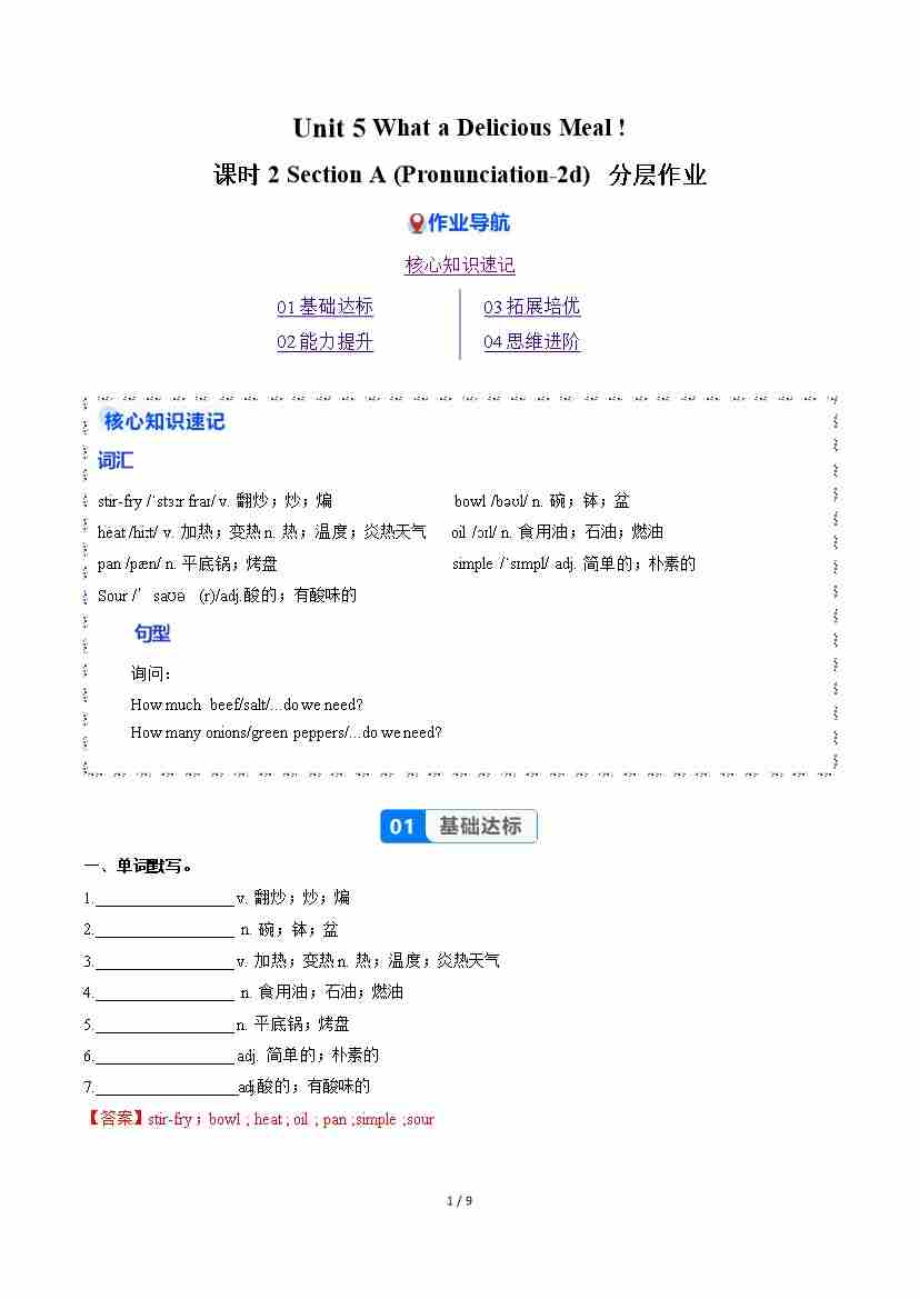 Unit 5 课时2 Section A(Pronunciation-2d)(分层作业)(解析版)