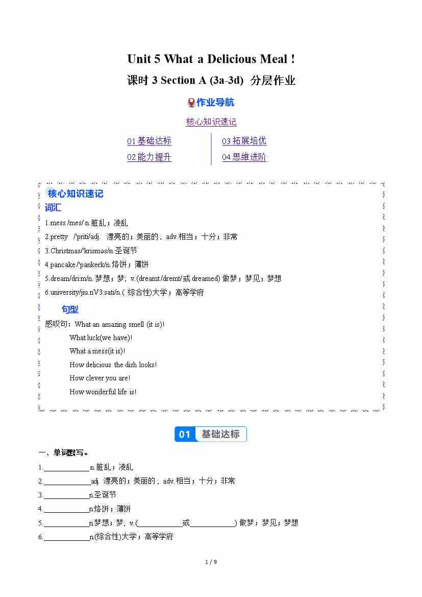 Unit 5 课时3 Section A(3a-3d)(分层作业)(原卷版)
