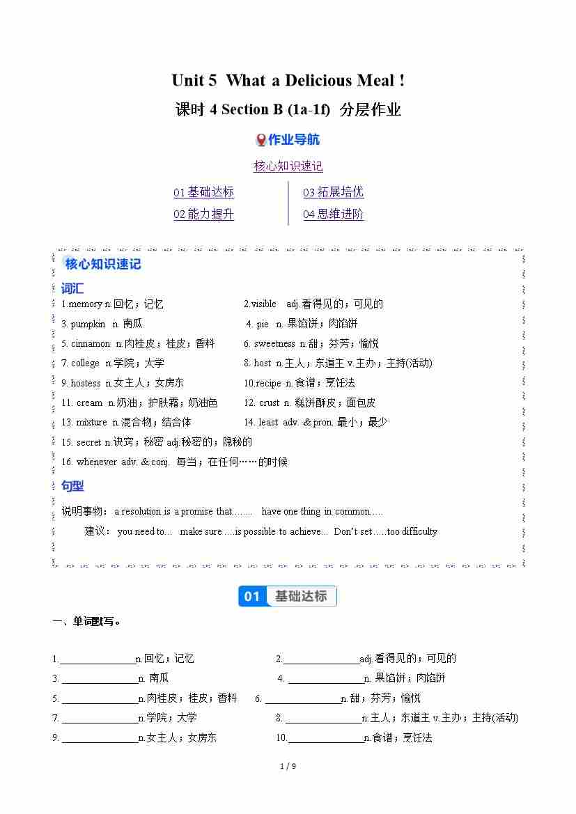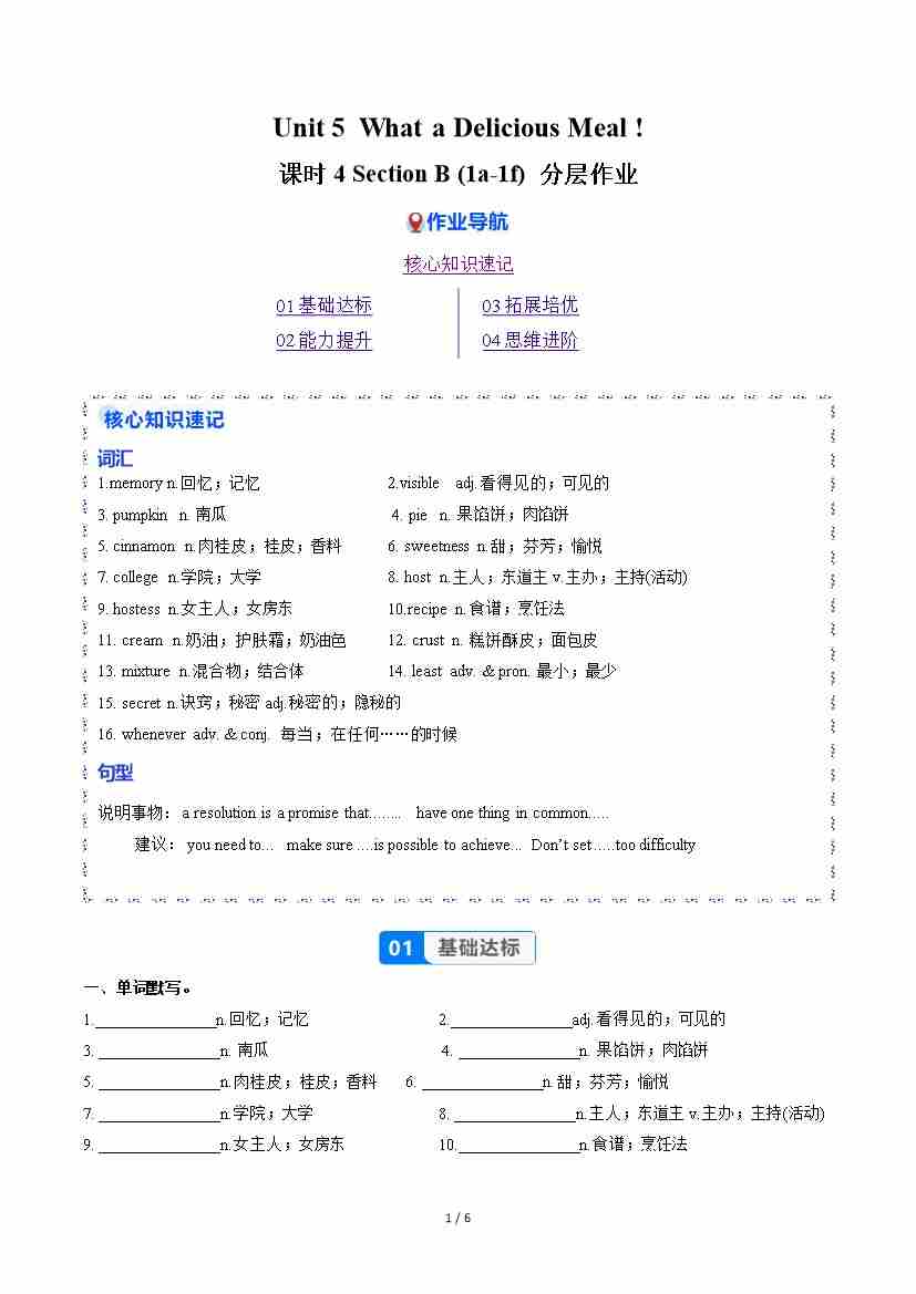 Unit 5 课时4 Section B(1a-1f)(分层作业)(原卷版)