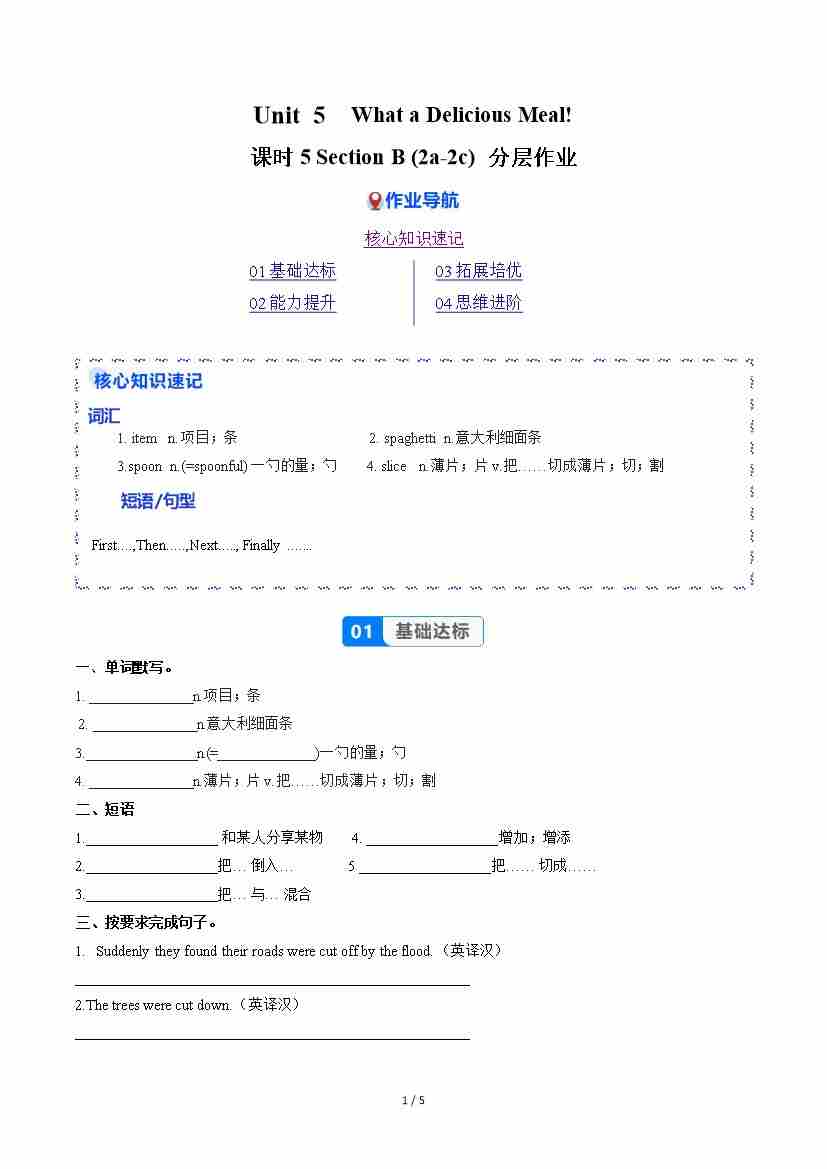 Unit 5 课时5 Section B(2a-2c)(分层作业)(原卷版)
