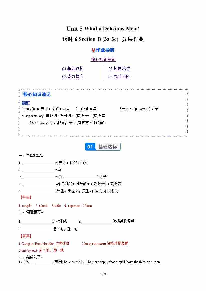 Unit 5 课时6 Section B(3a-3c)(分层作业)(解析版)