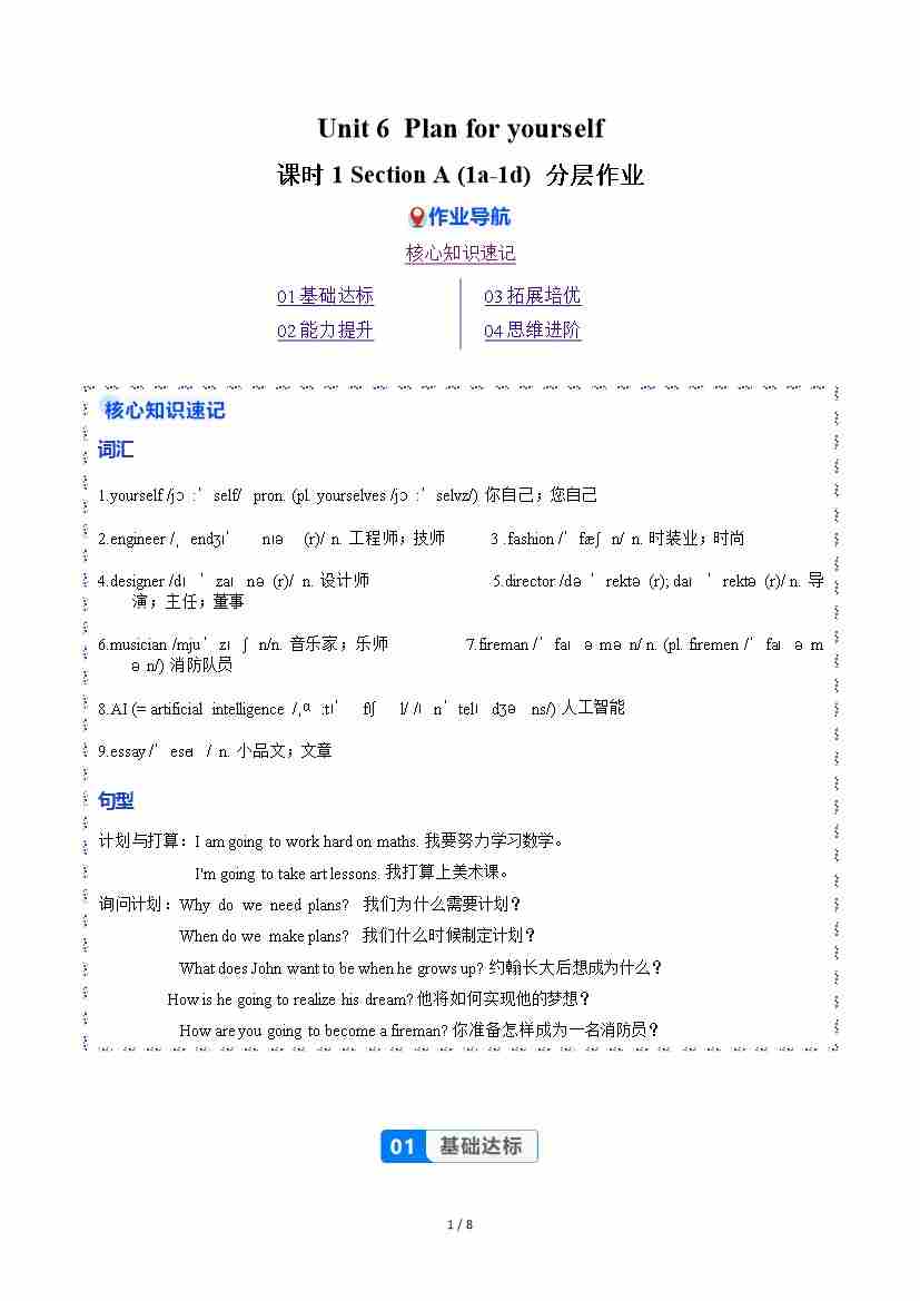 Unit 6 课时1 Section A(1a-1d)(分层作业)(解析版)