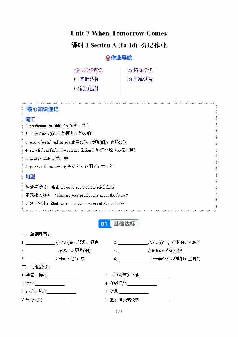 Unit 7 课时1 Section A(1a-1d)(分层作业)(原卷版)