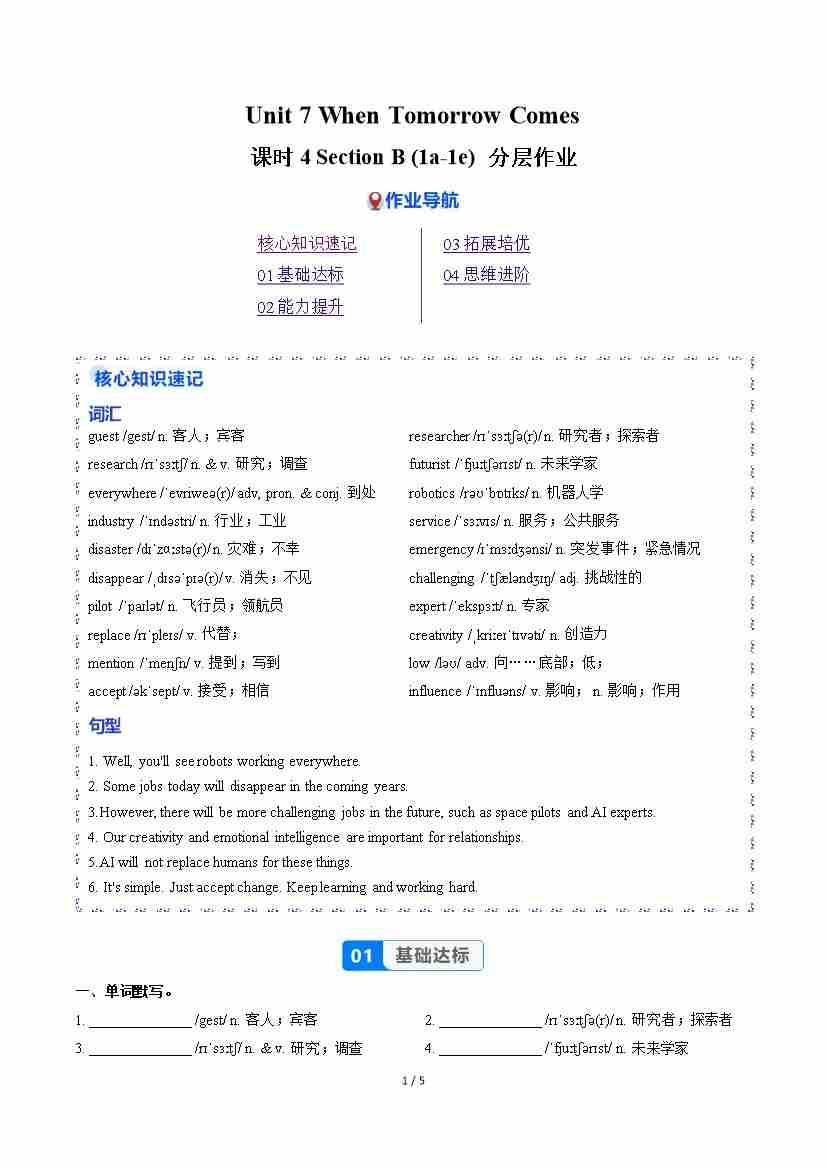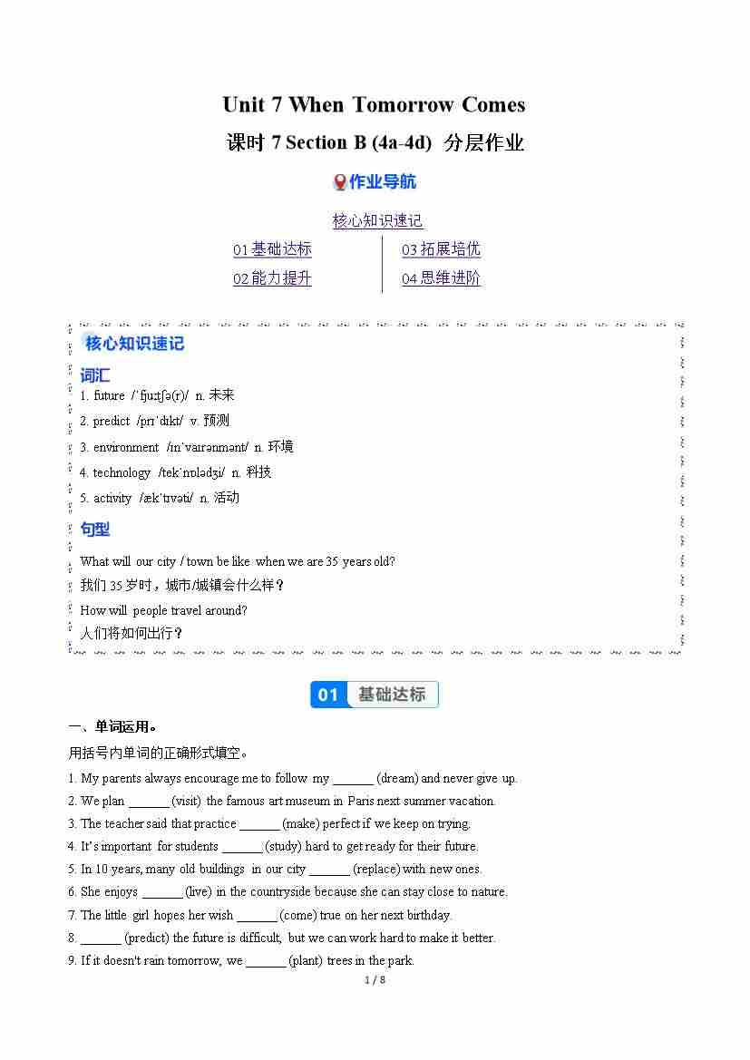 Unit 7 课时4 Section B(1a-1e)(分层作业)(原卷版)