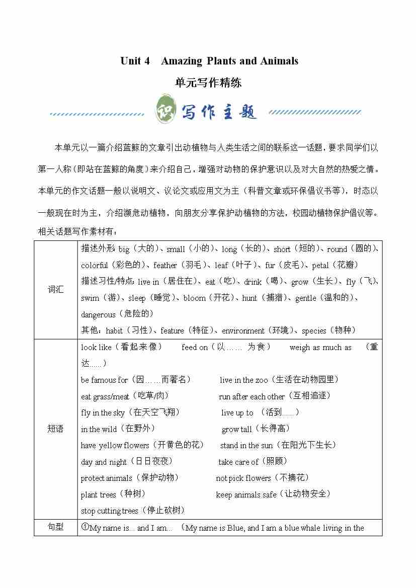 Unit 4 Amazing Plants and Animals 人与自然(单元写作精练) (原卷版)