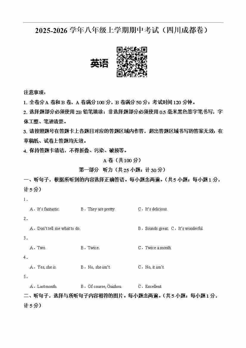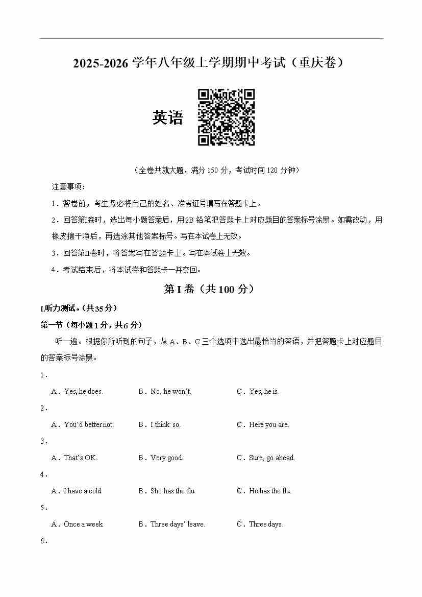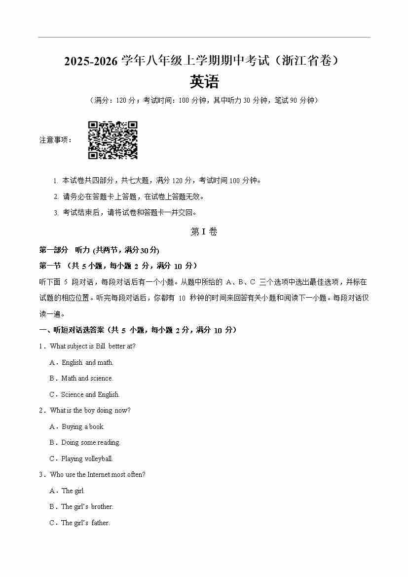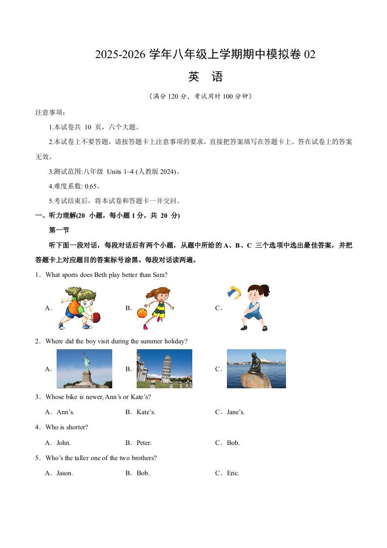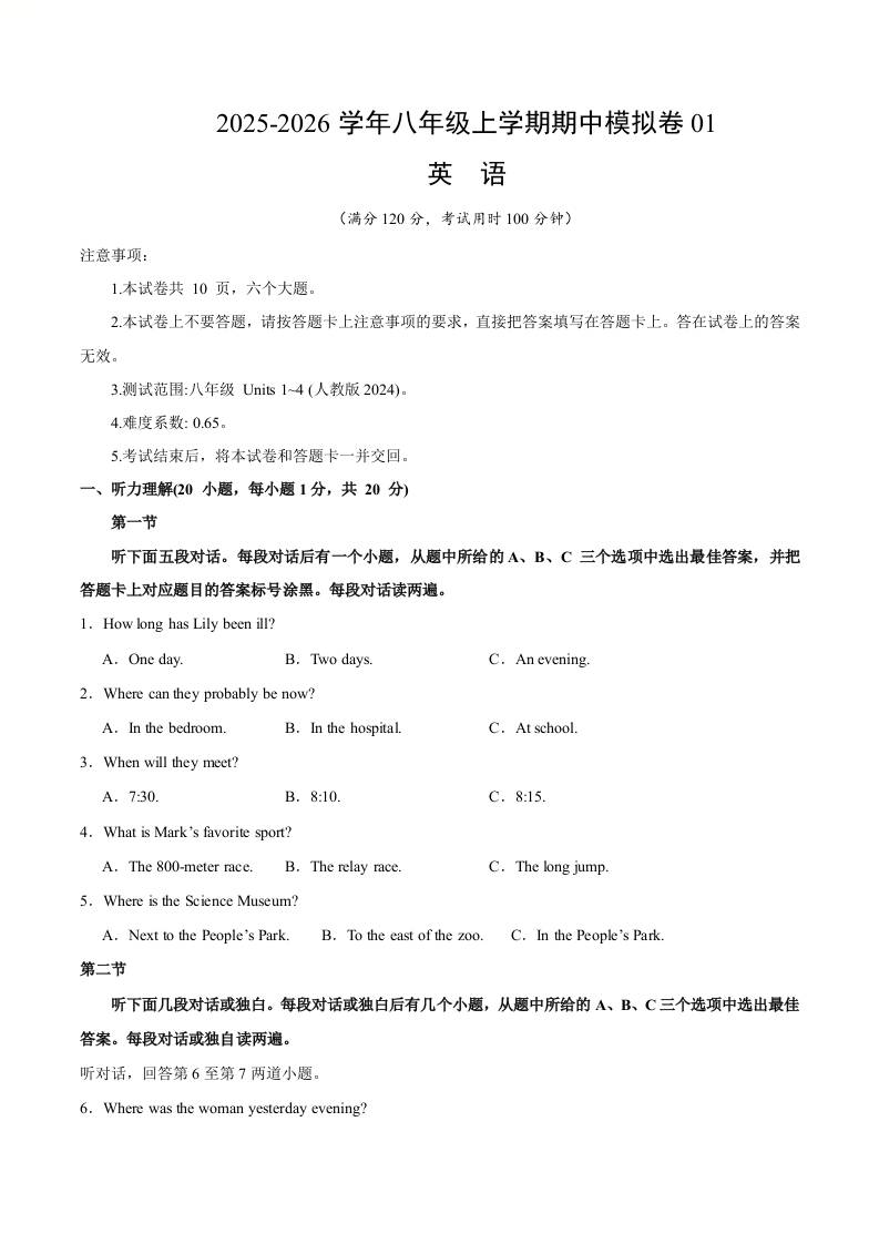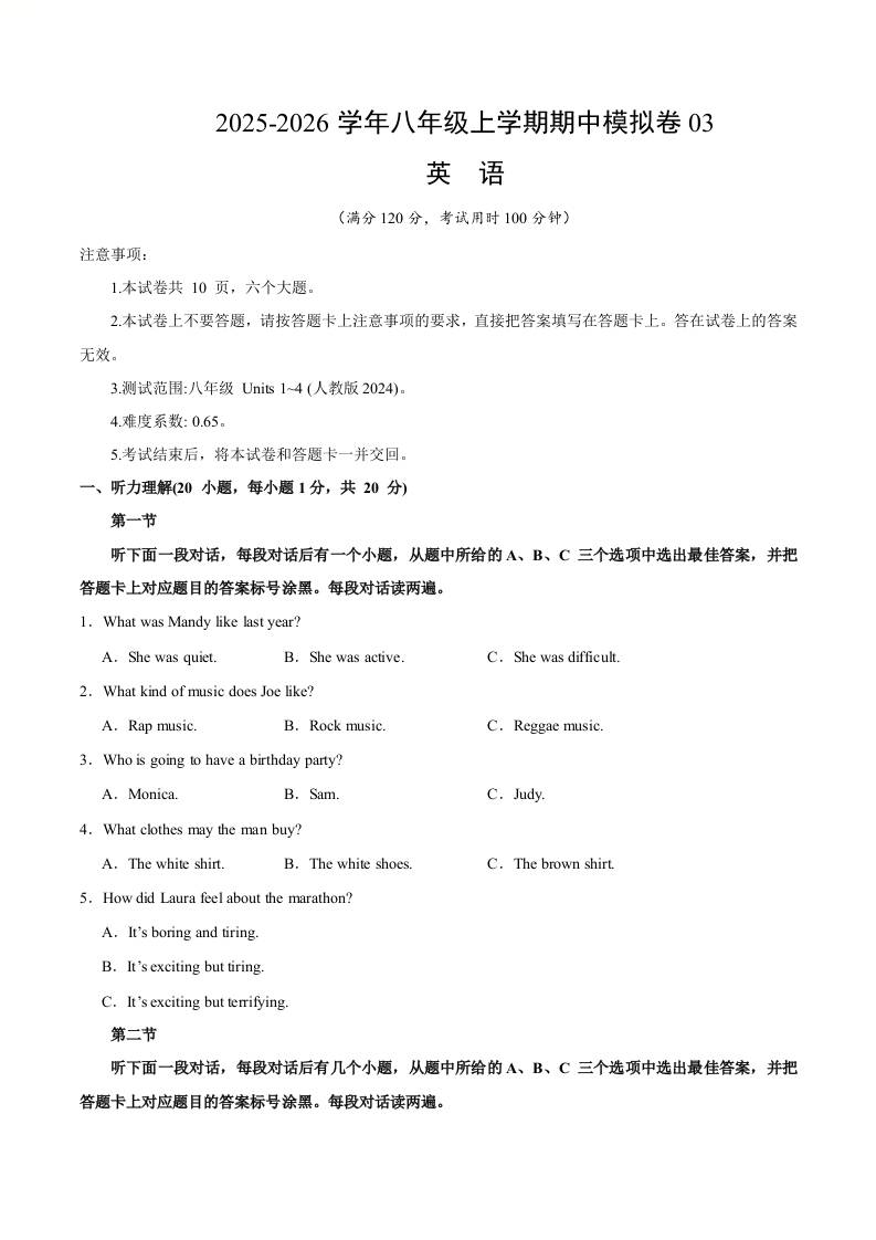 八年级英语上学期期中模拟卷(人教版专用)(原卷版)