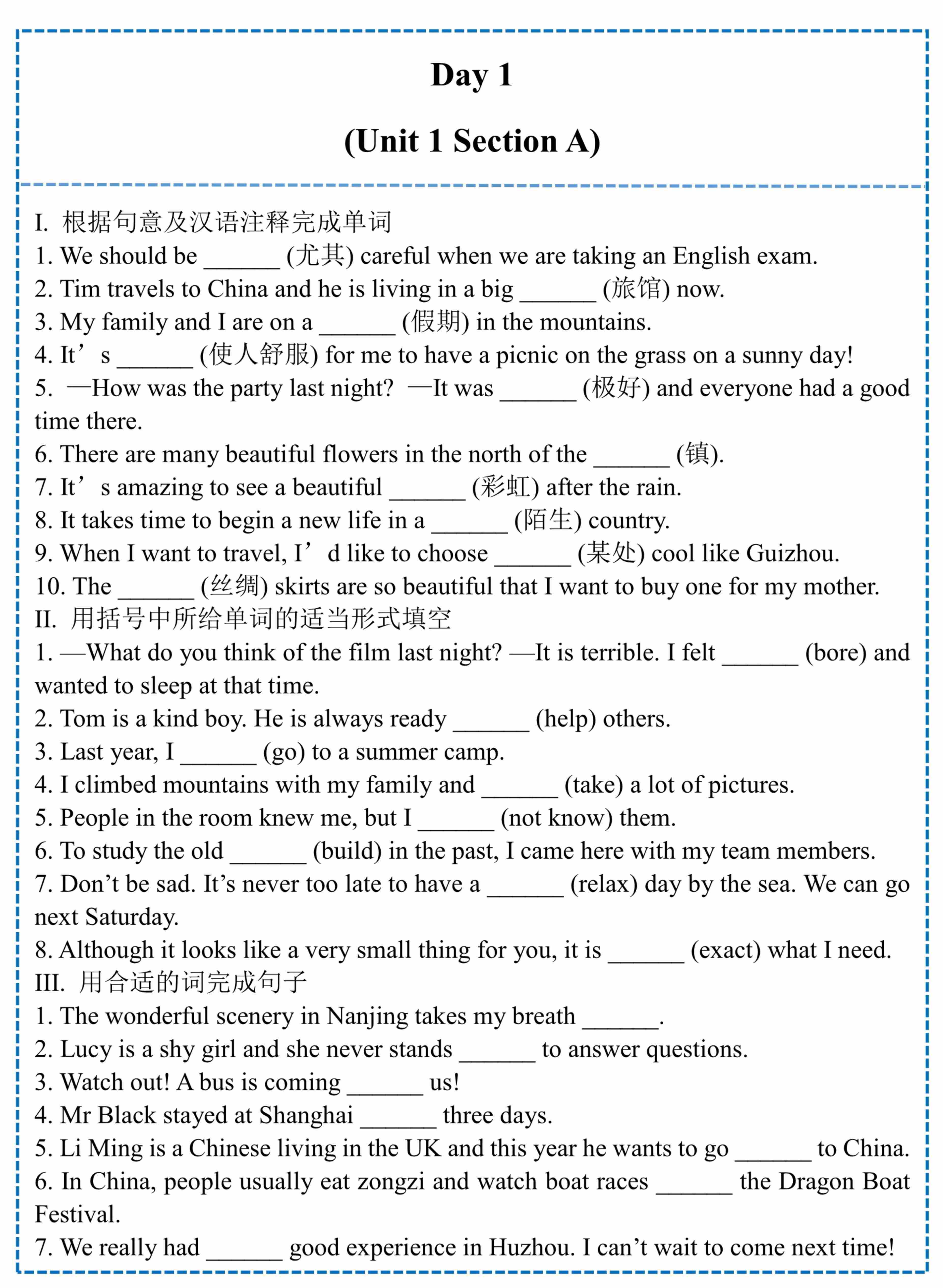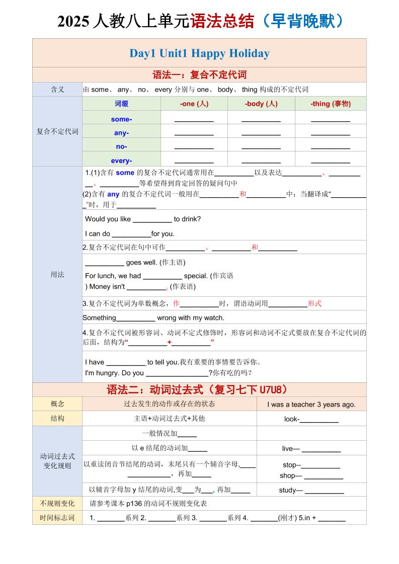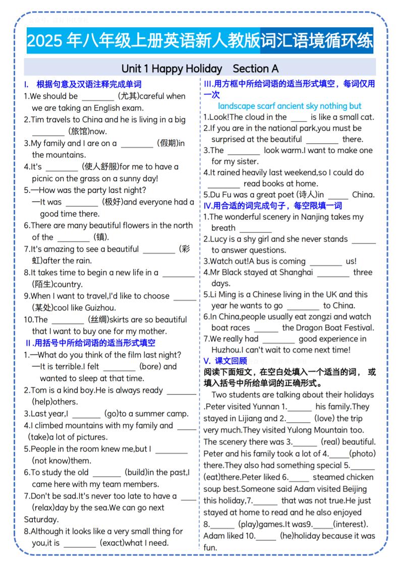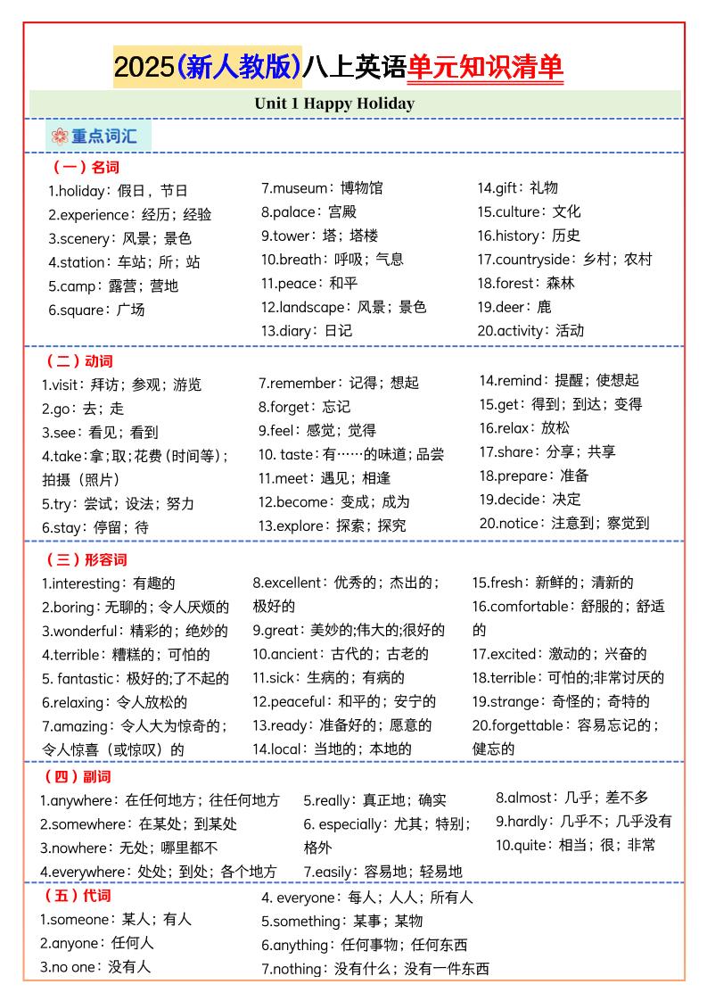 八上Unit1-Unit8 重点单词_词性转换_练习题_短语_完成句子_背记版(1)