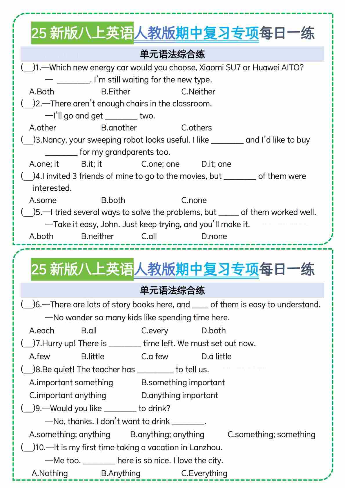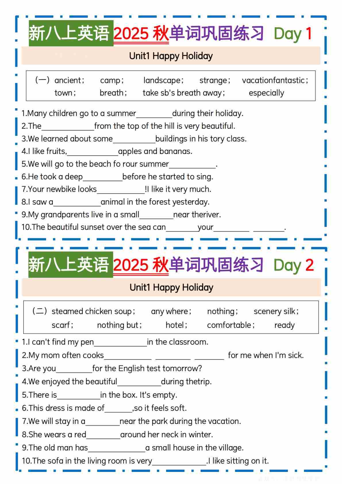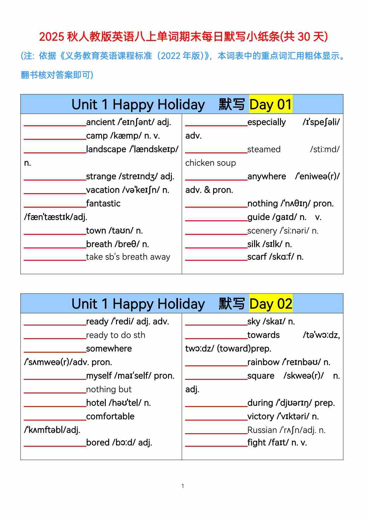 2025秋人教版英语八上单词期末每日默写小纸条(共30天) 英默中33