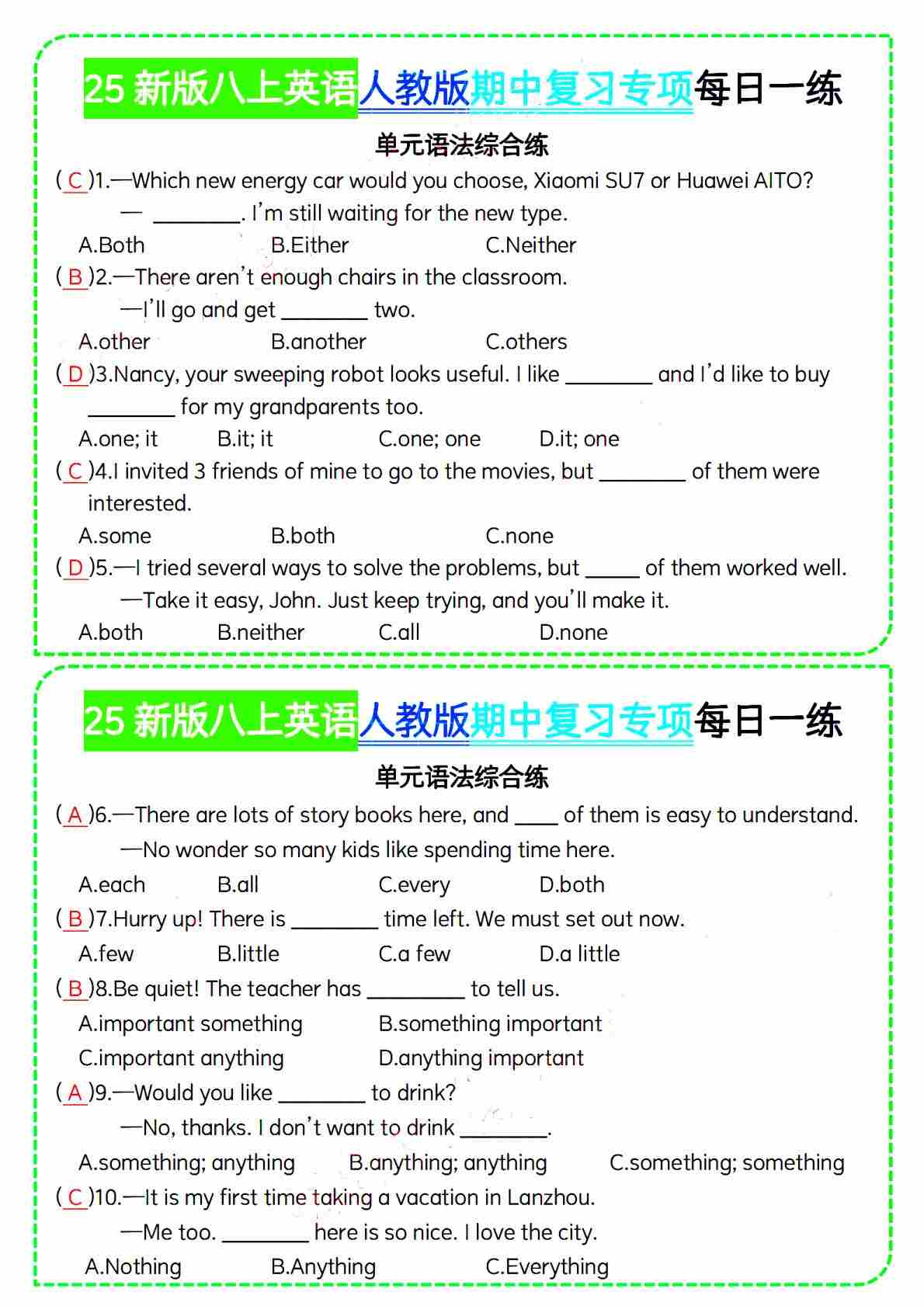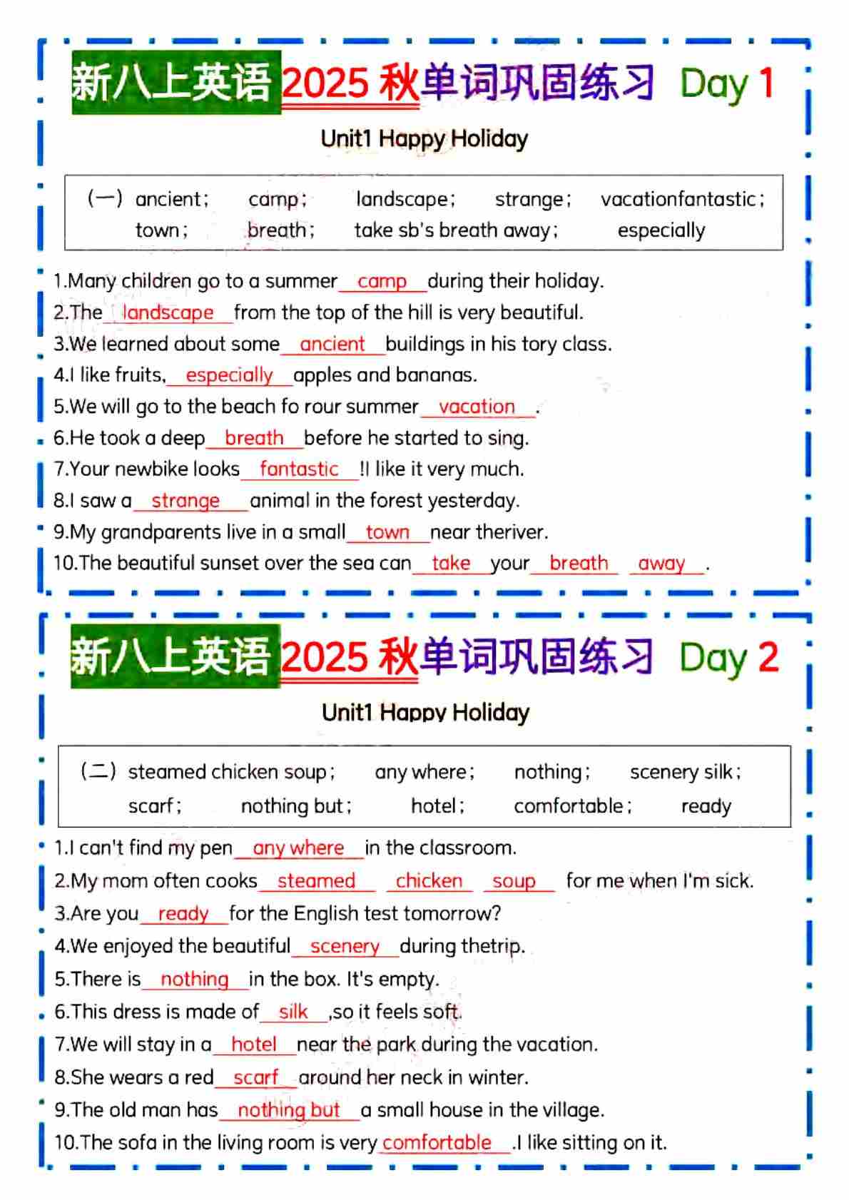 八上Unit1 -Unit8 重点单词_词性转换_练习题_短语_完成句子_答案版1
